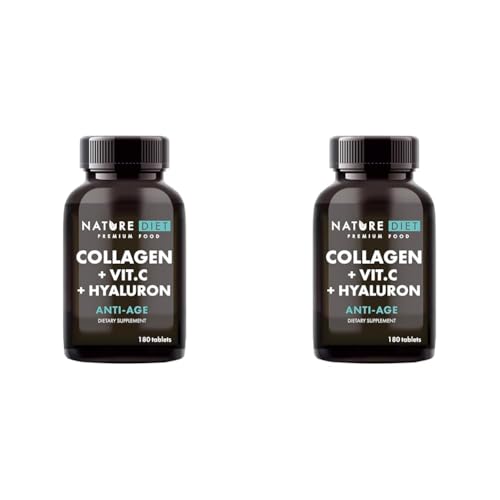 Nature Diet - Collagen with Hyaluronic Acid and Vitamin C, 180 Tablets, 500 mg, Anti Ageing, Hydrolyzed Collagen (Pack of 2)