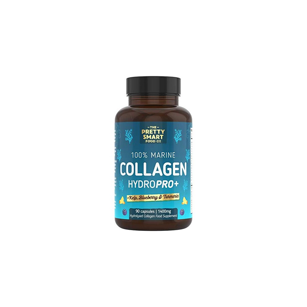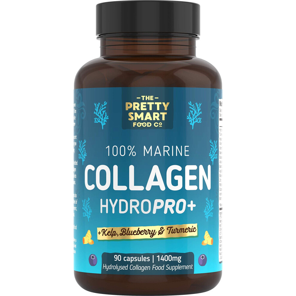 Marine Collagen Supplements For Women - with Hyaluronic Acid, Biotin, Blueberry & Vitamins - 1400MG - Pure Hydrolyzed Peptides - 45 Day Supply - 90 Capsules (not tablets) - UK Made - Pretty Smart Food