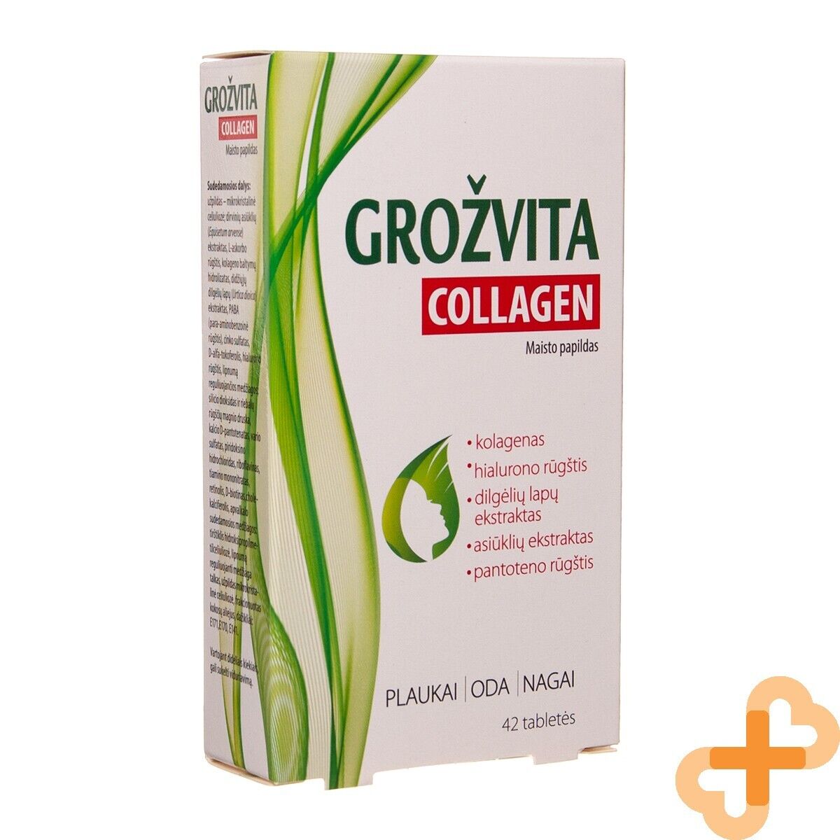 GROŽVITA COLLAGEN 42 Tablets Hair Skin Nails Supplement Hyaluronic Acid