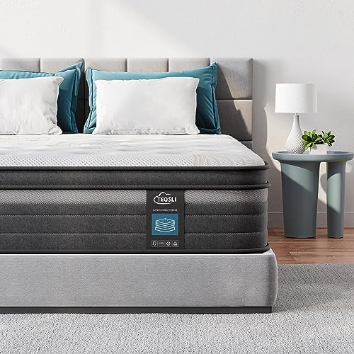 TeQsli 4FT6 Double Mattress, 10.6 Inch Gel Memory Foam Pocket Sprung Hybrid Double Mattress 7 Zone Orthopedic for Pressure & Back Pain Relief Medium Firm Box 135x190x27cm