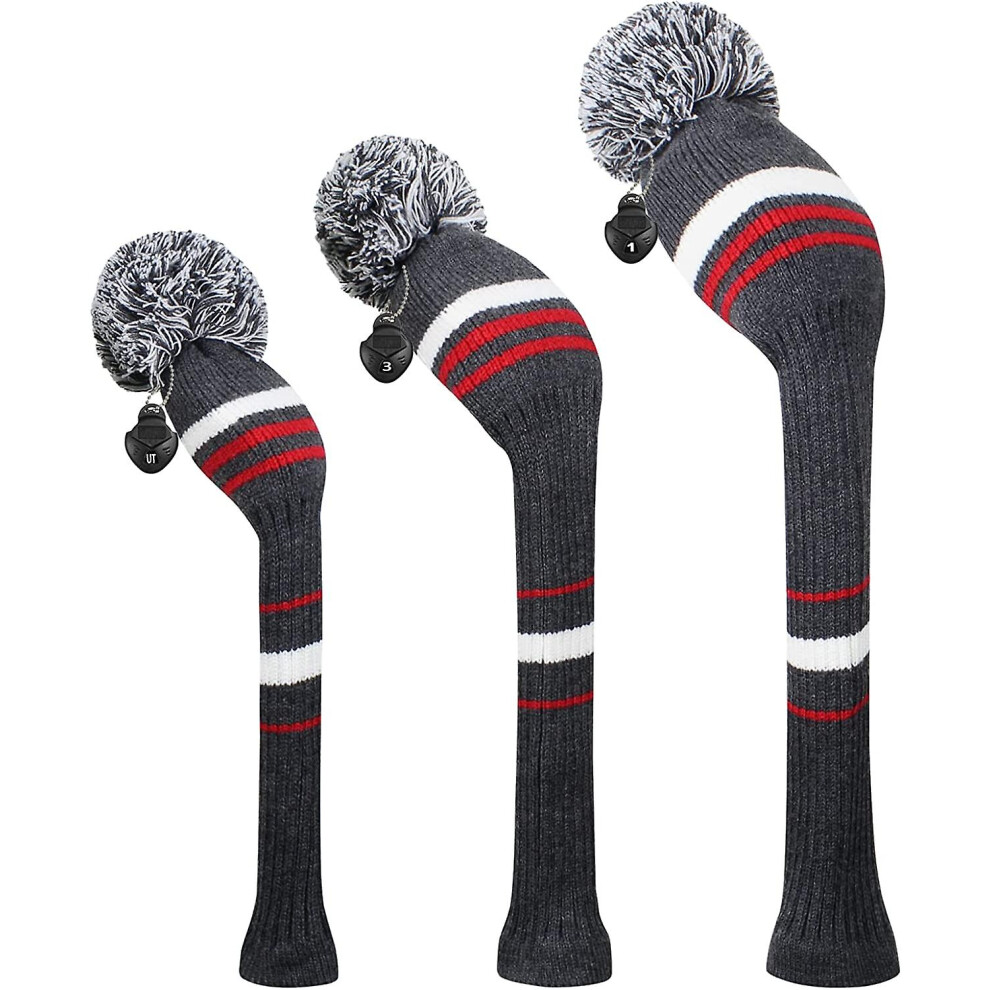 Knit Woods Golf Head Covers, Set of 4, Grey Warning Striped, Fit Driver (460CC) Fairways hybrid/UT. Soft and Elastic, Decorative Your Golf Bag to Make It Stand Out