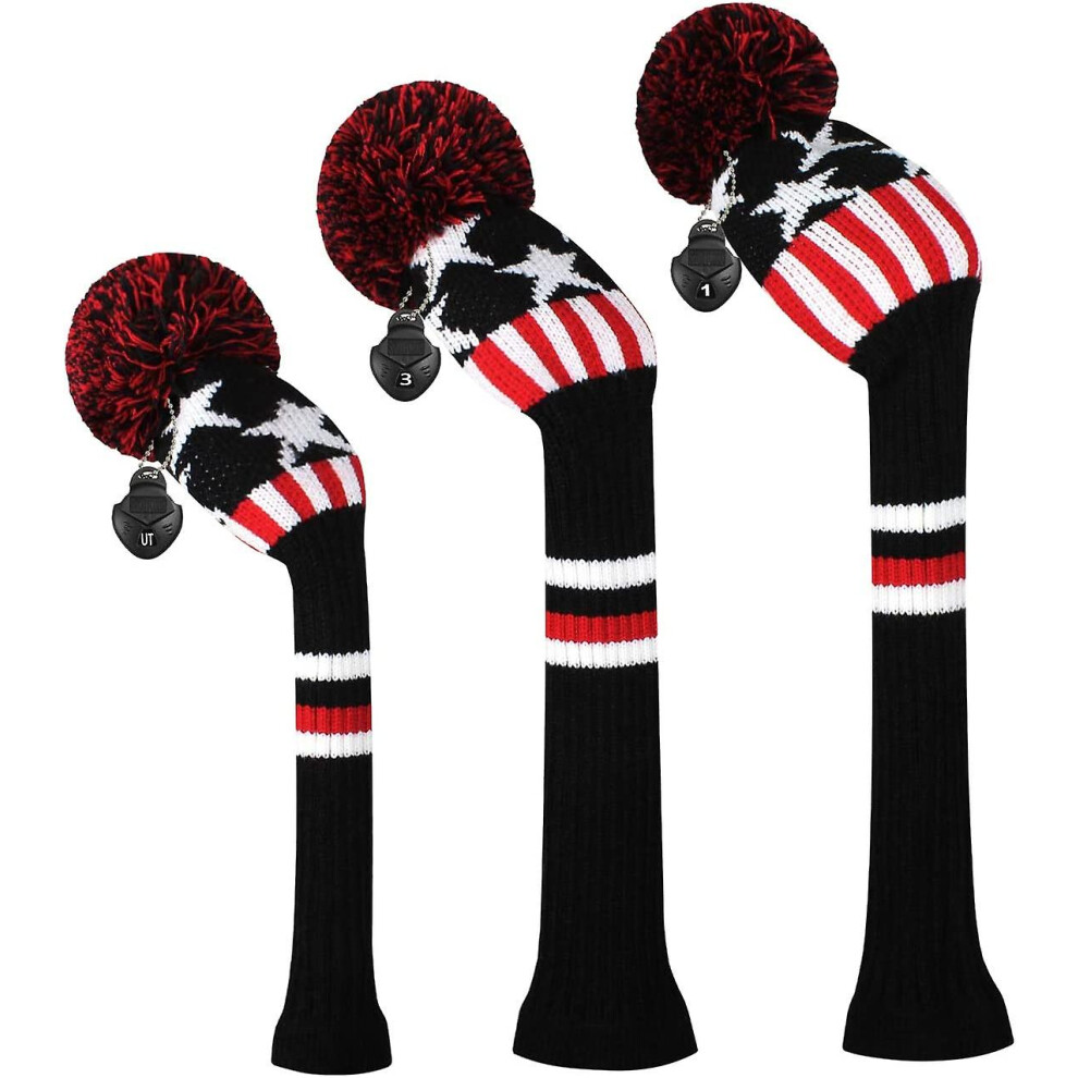 (Black stars and stripes) Scott Edward Golf Club Head Cover 3 Piece Set Perfect For Driver (460cc) Fairway Wood And Hybrid (ut) Golf Bag Changes Zhexi