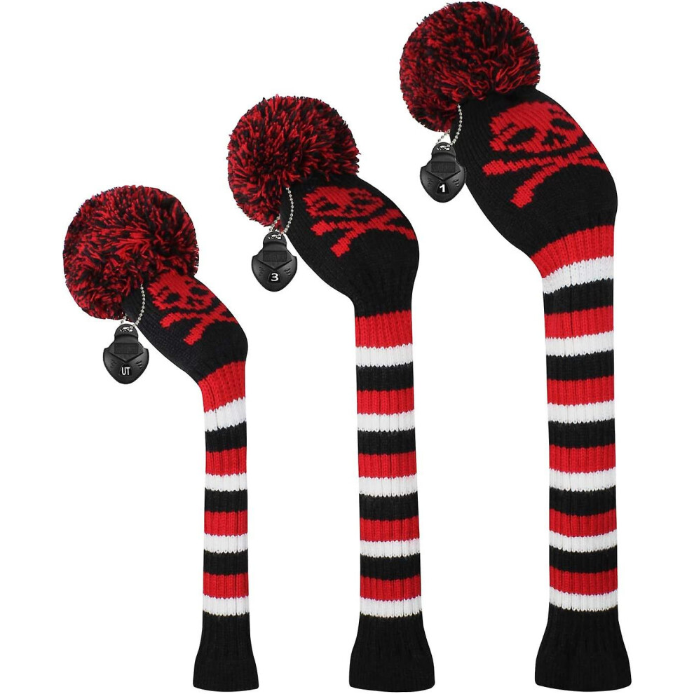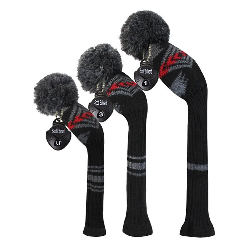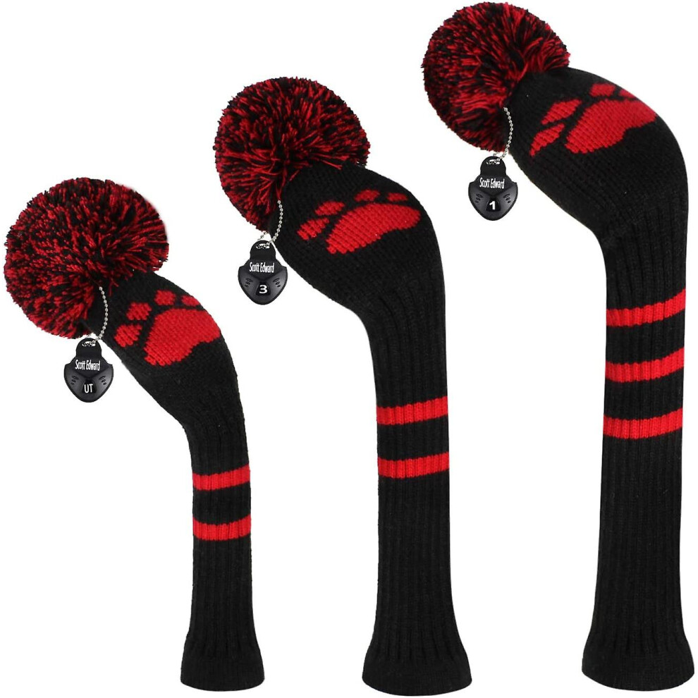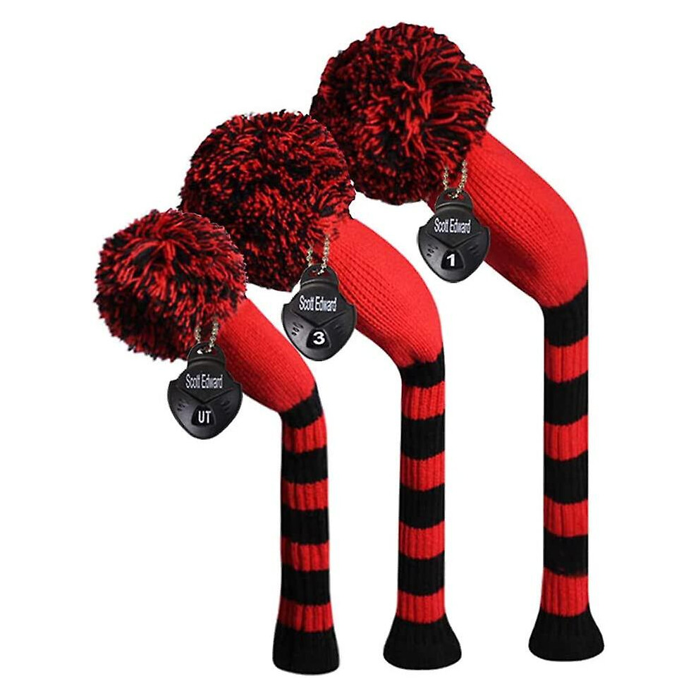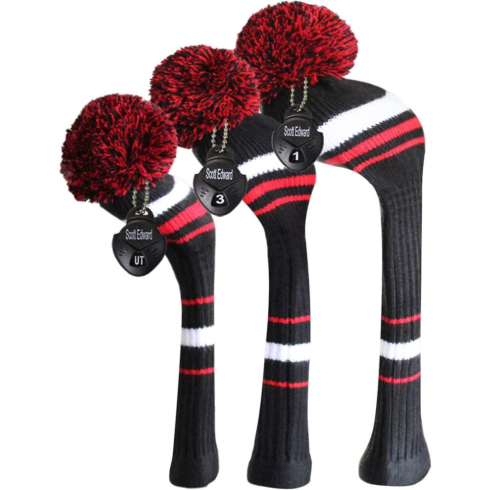 Scott Edward Knit Golf Headcovers Fits Well Driver(460cc) Fairway Wood and Hybrid(UT) for Woods Set of 3 The Perfect Change for Golf Bag (Black Red Numbers)