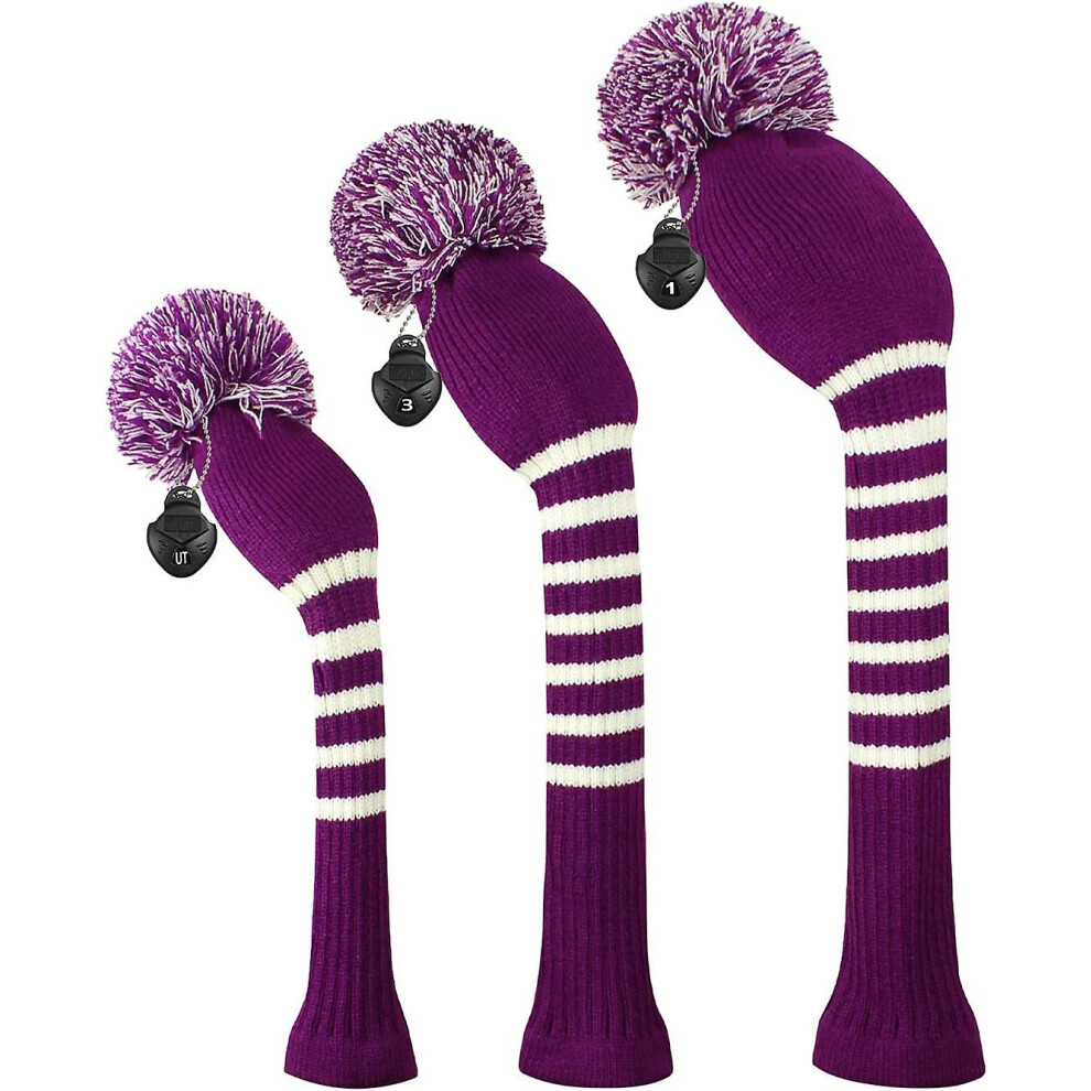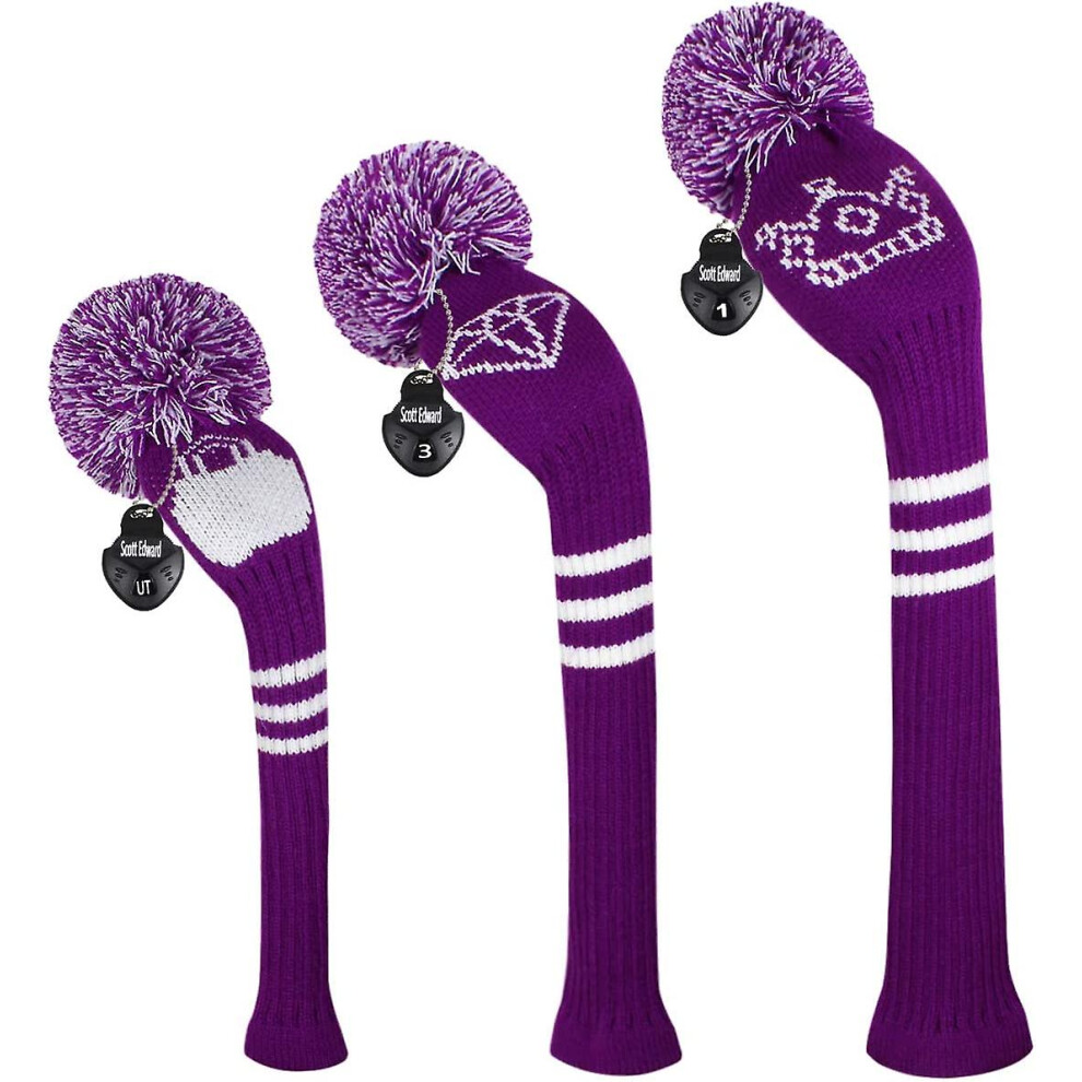(Purple white stripe) Scott Edward Golf Club Head Cover 3 Piece Set Perfect For Driver (460cc) Fairway Wood And Hybrid (ut) Golf Bag Changes Zhexin