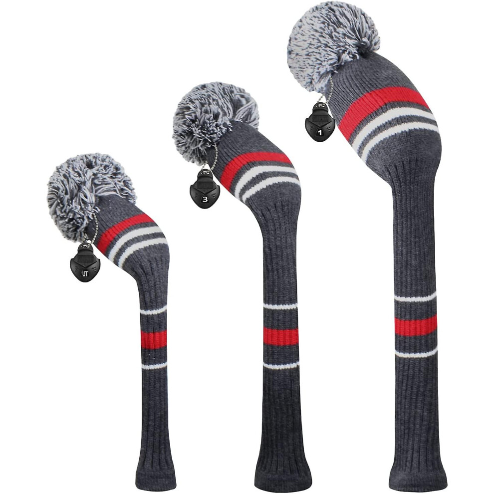 (Grey red white stripe) Scott Edward Golf Club Head Cover 3 Piece Set Perfect For Driver (460cc) Fairway Wood And Hybrid (ut) Golf Bag Changes Zhexin