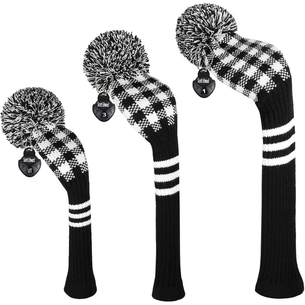 (Black and white check) Scott Edward Golf Club Head Cover 3 Piece Set Perfect For Driver (460cc) Fairway Wood And Hybrid (ut) Golf Bag Changes Zhexin