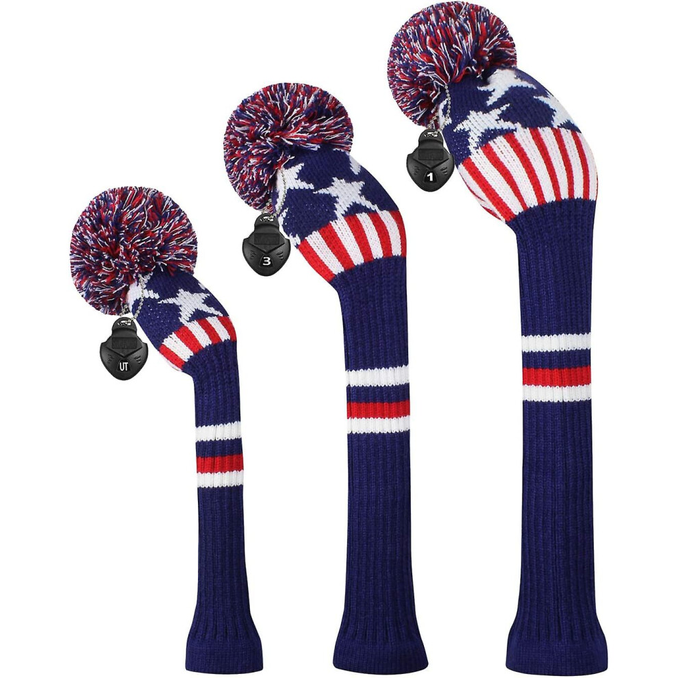 (Blue Stars and Stripes) Scott Edward Golf Club Head Cover 3 Piece Set Perfect For Driver (460cc) Fairway Wood And Hybrid (ut) Golf Bag Changes Zhexin