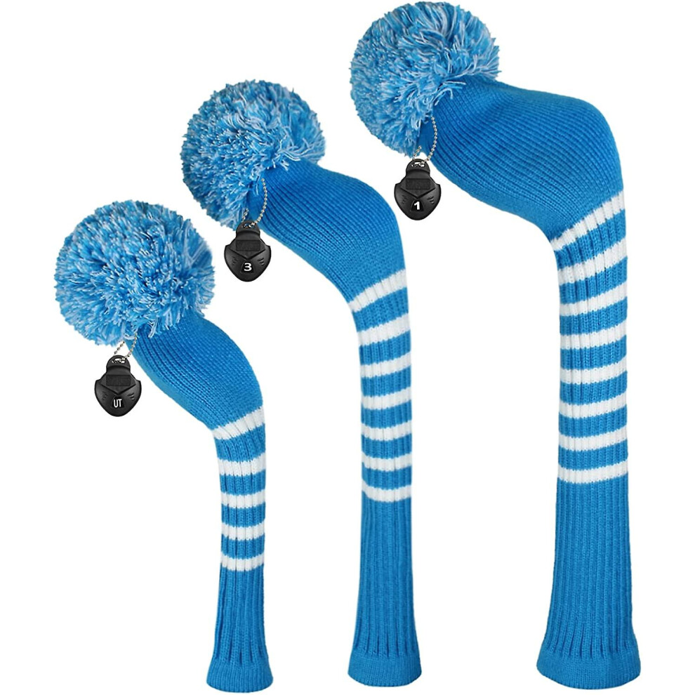 (Sky blue white stripe) Scott Edward Golf Club Head Cover 3 Piece Set Perfect For Driver (460cc) Fairway Wood And Hybrid (ut) Golf Bag Changes Zhexin
