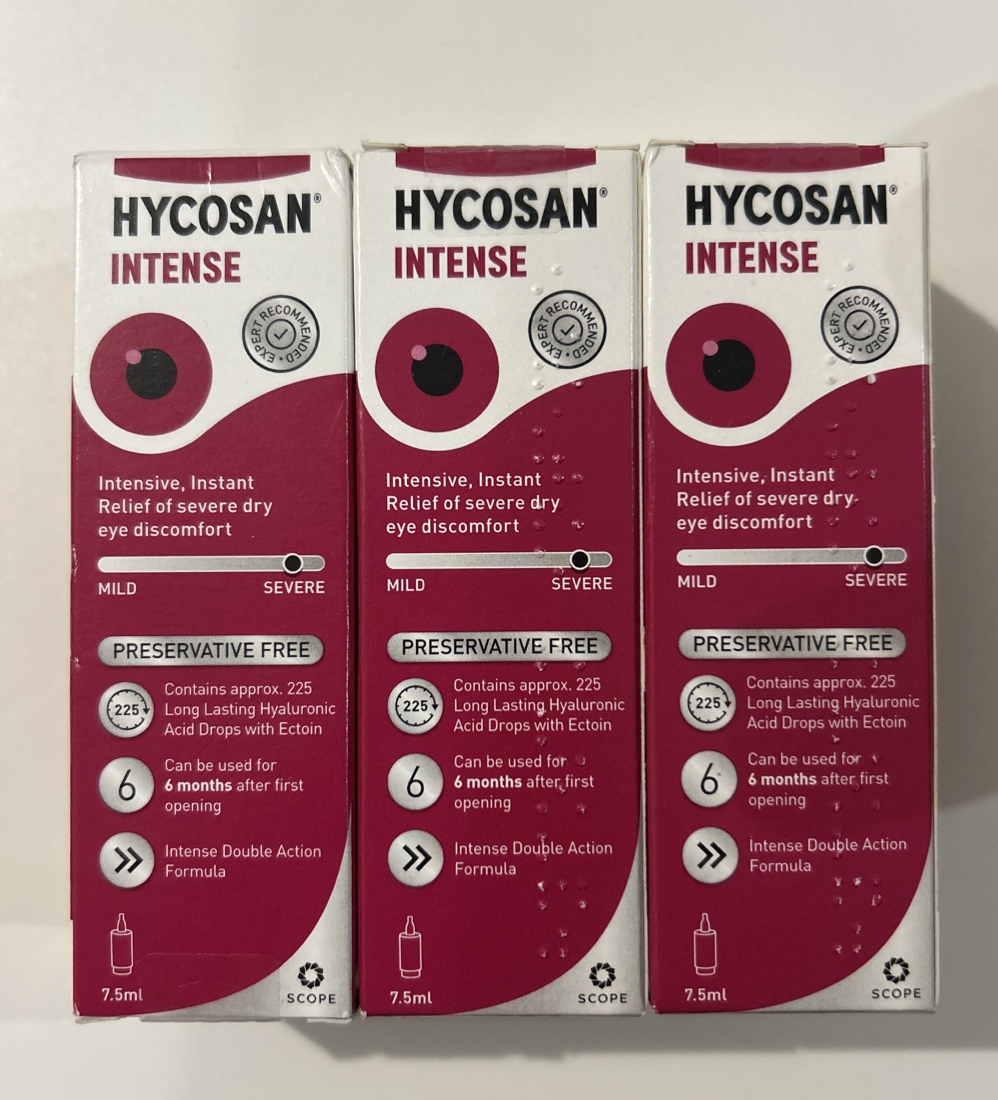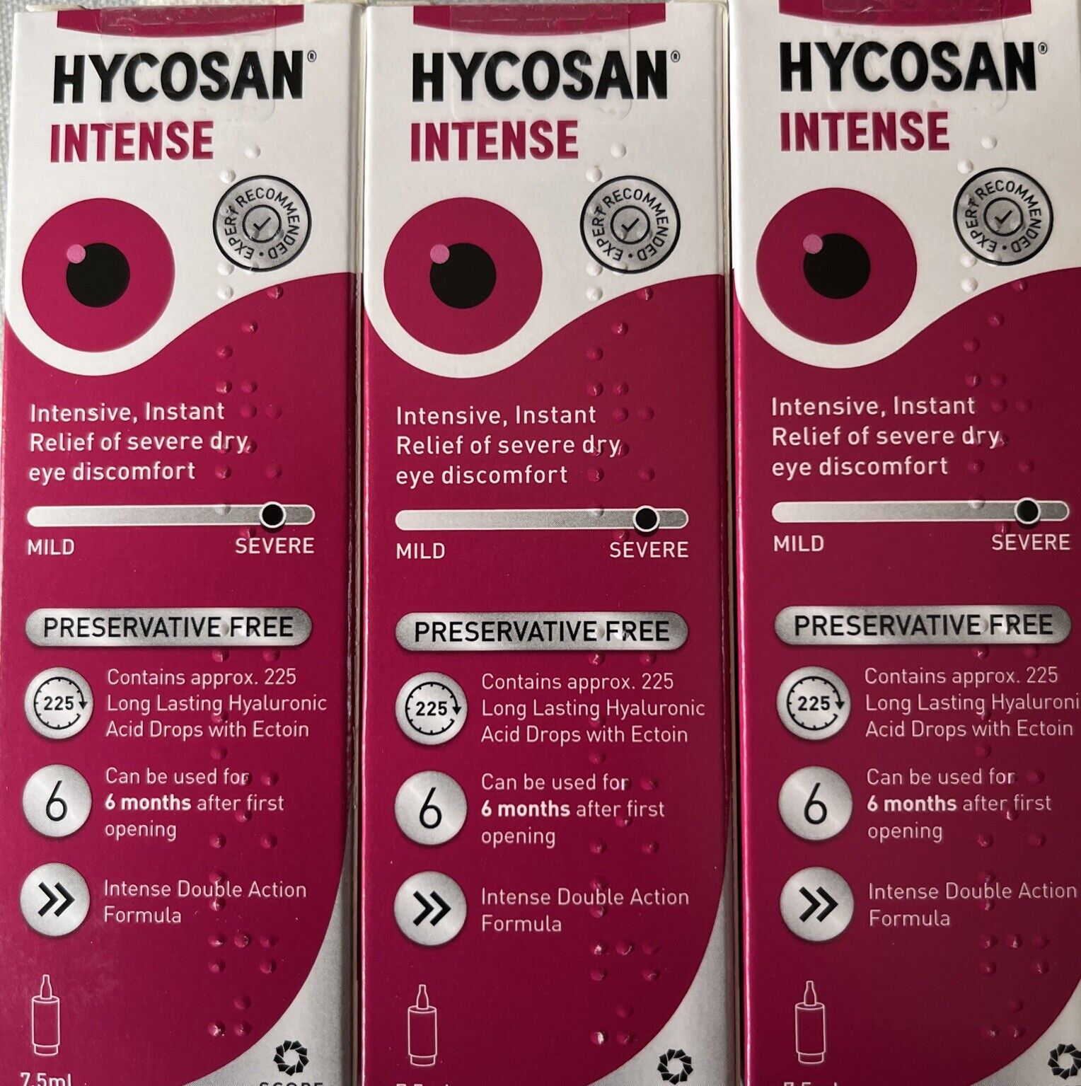 3x Hycosan Intense Lubricating Eye Drops 7.5ml -FOR DRY BURNING SORE ITCHY EYES