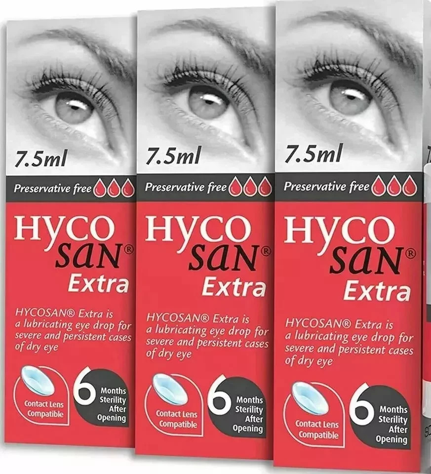 Hycosan Extra 3x pack Preservative Free DRY Eye Drops RECOMMENDED BY OPTICIANS