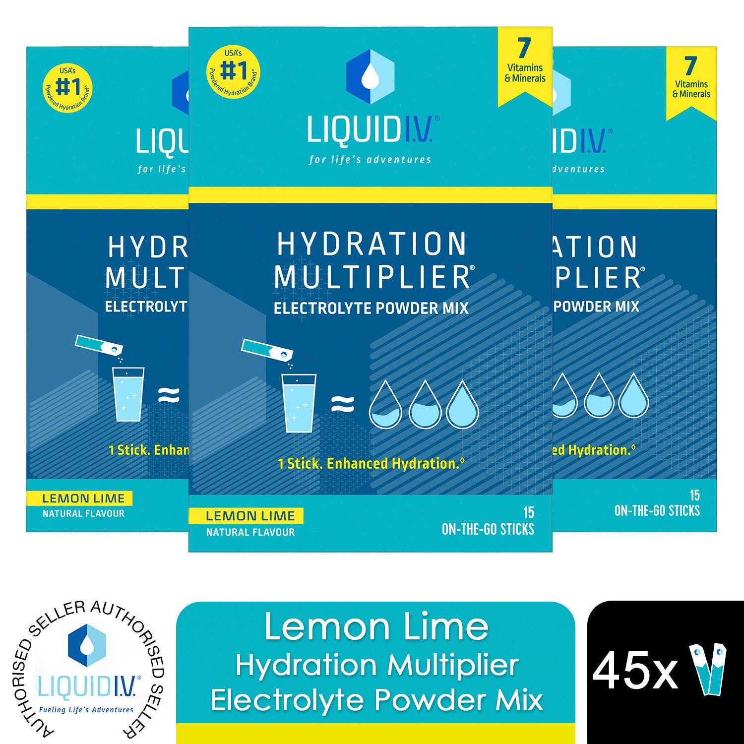 Liquid I.V. Lemon Lime Hydration Multiplier Electrolyte Powder Mix, 45 Sachets