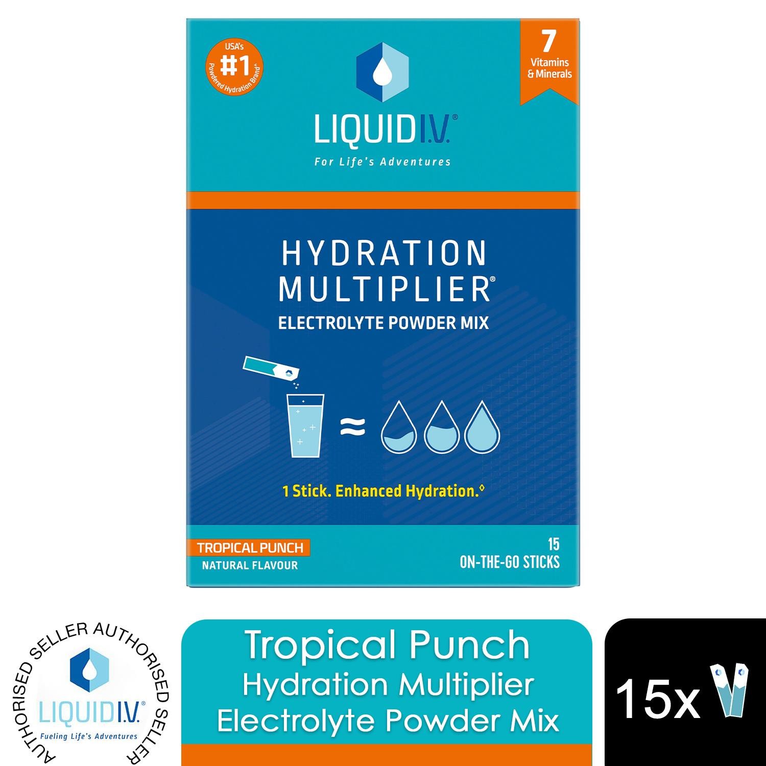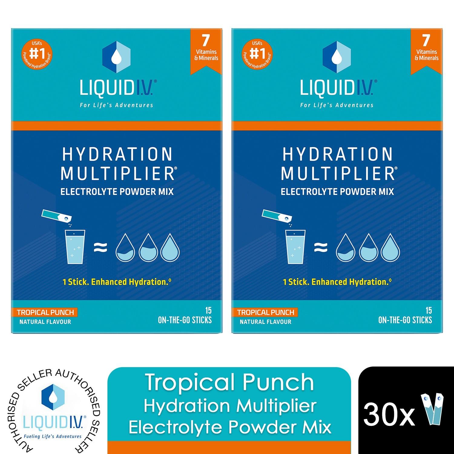Liquid I.V. Hydration Multiplier Electrolyte Powder Mix Tropical Punch 15 Sachets
