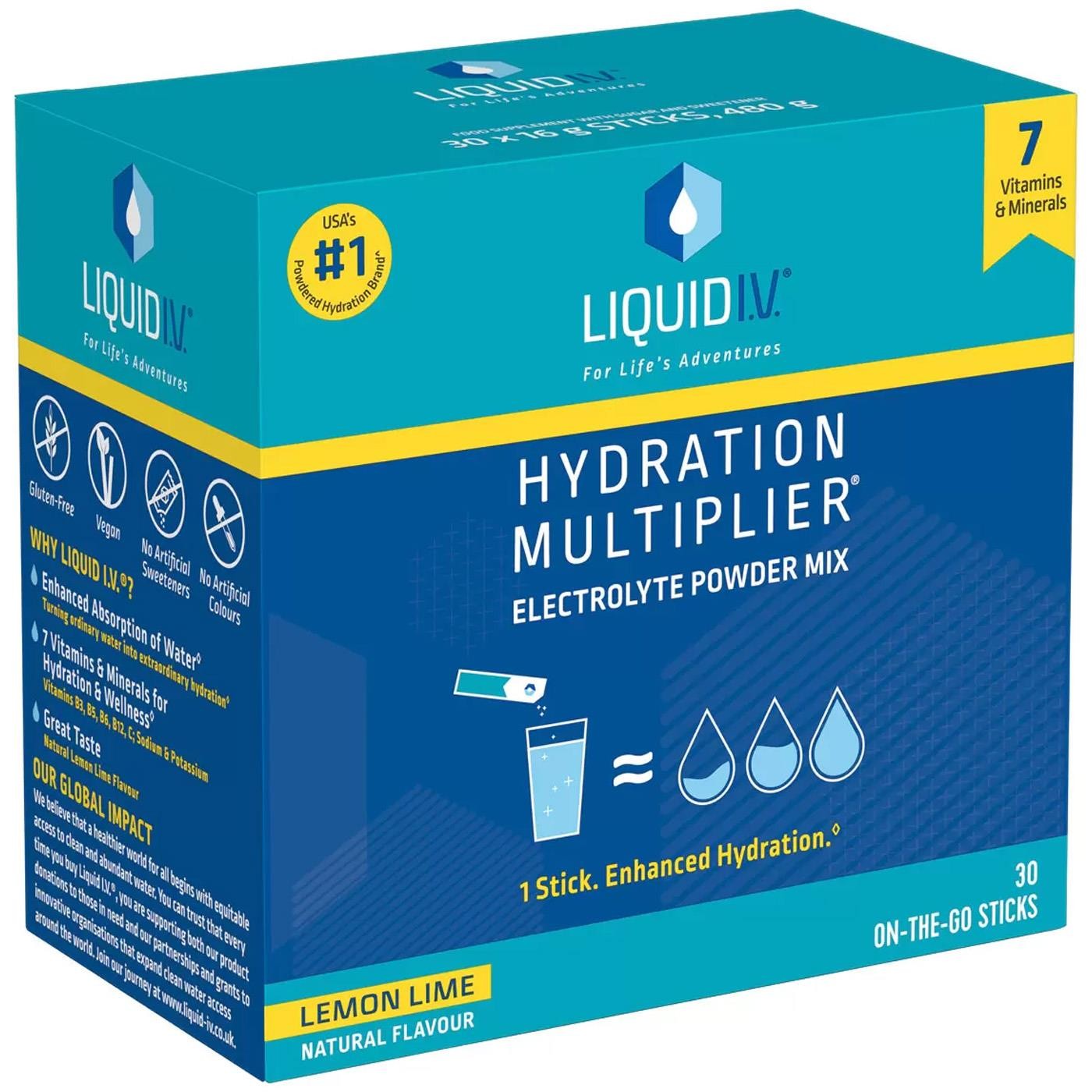 Liquid I.V.Hydration Multiplier Electrolyte Powder Mix Lemon Lime Pack 30Sachets