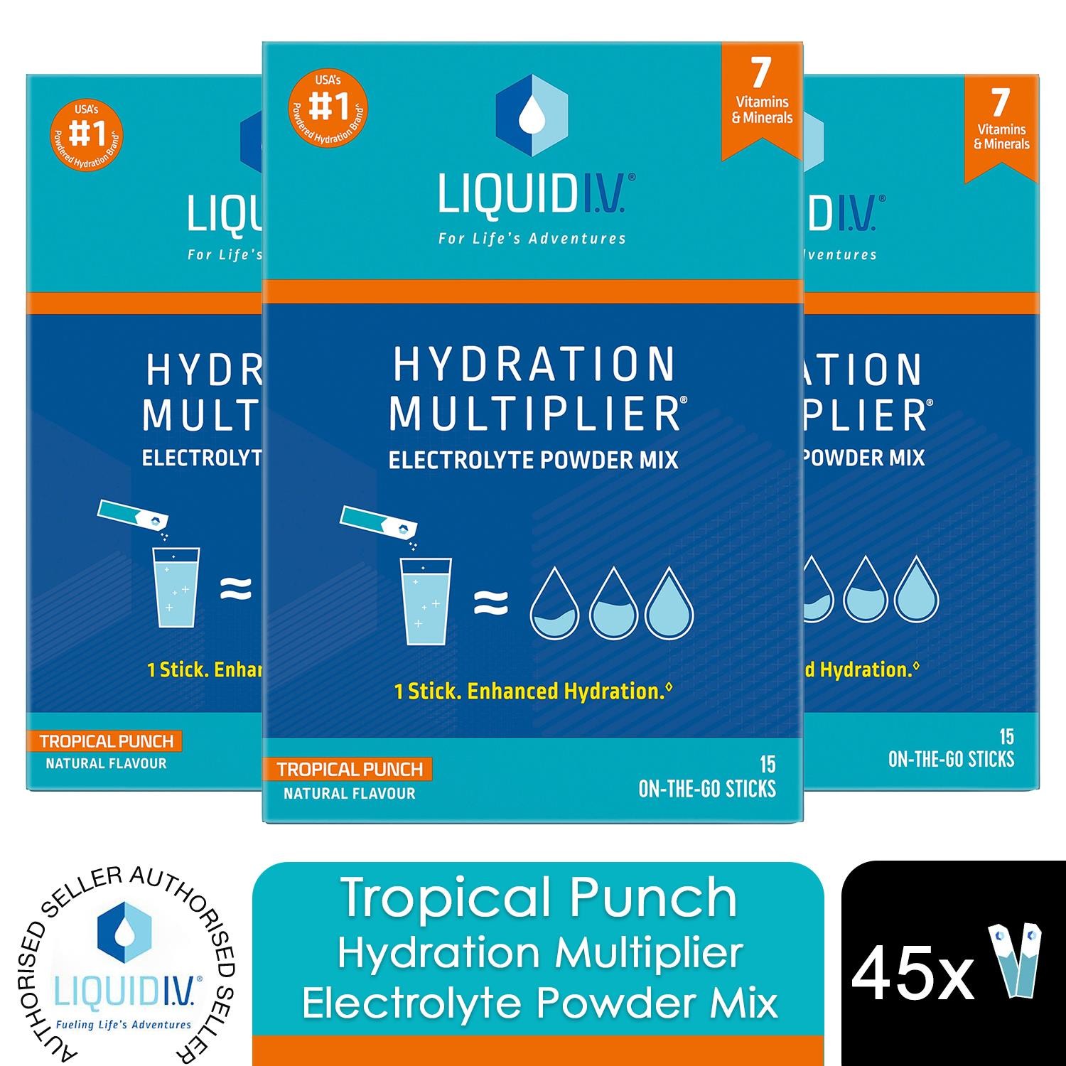 Liquid I.V. Hydration Multiplier Electrolyte Powder Mix Tropical Punch 3 Sachets