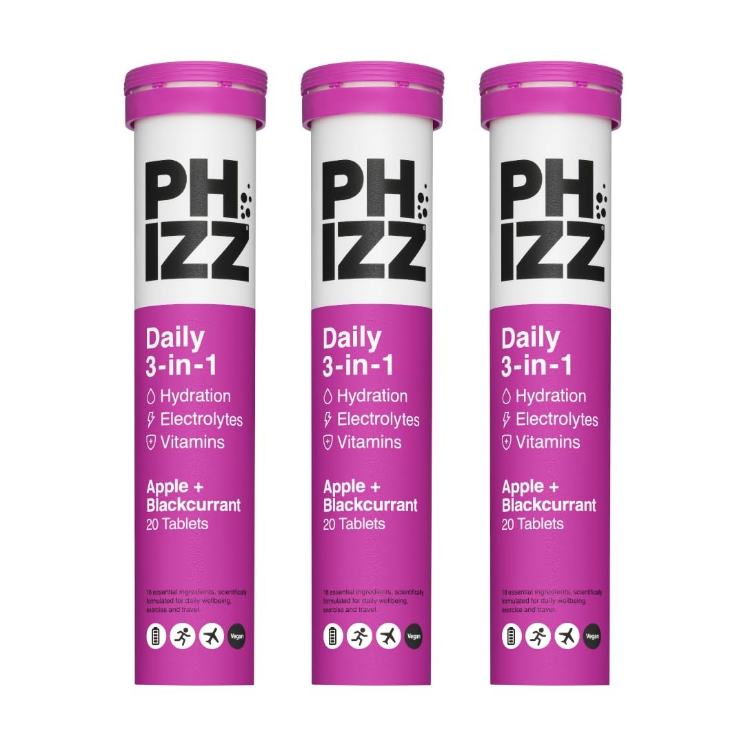 Phizz Electrolytes, Multivitamin & Hydration Tablets - 20 count (Pack of 3)