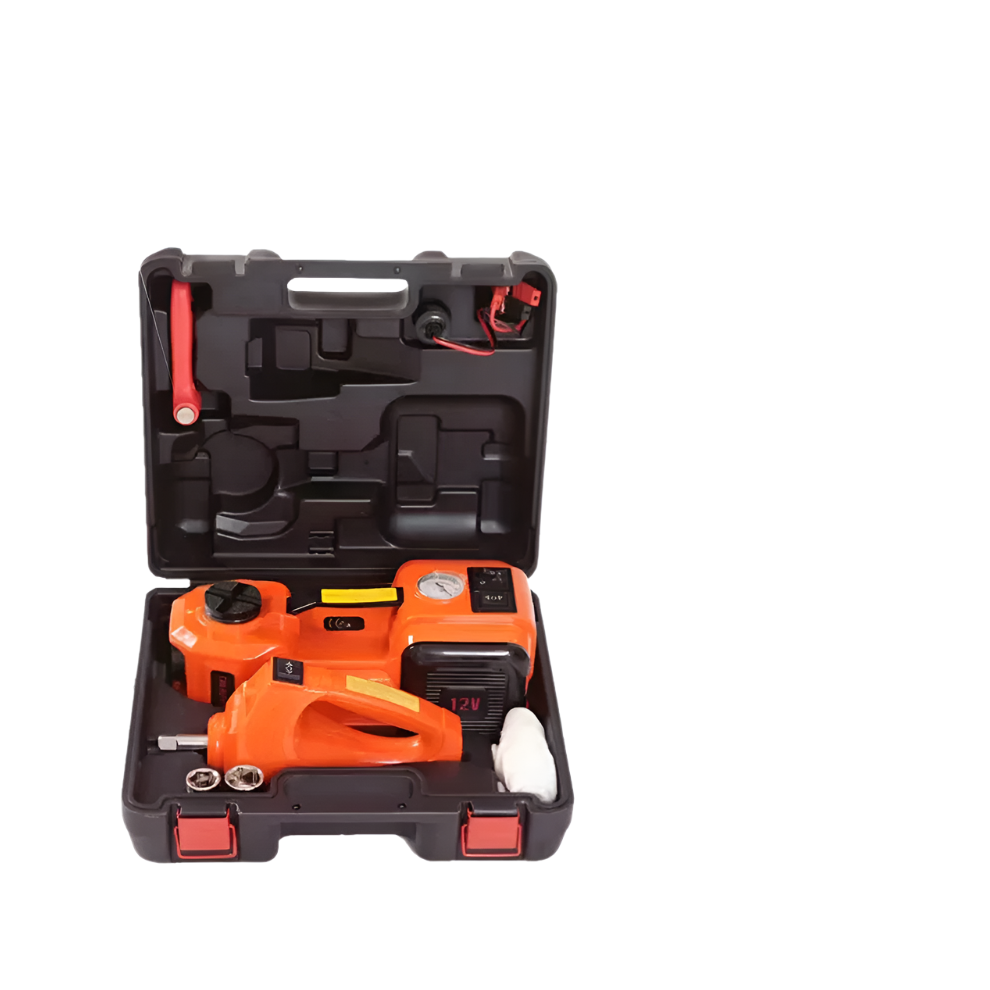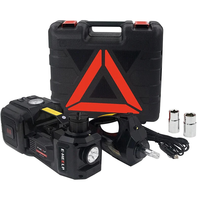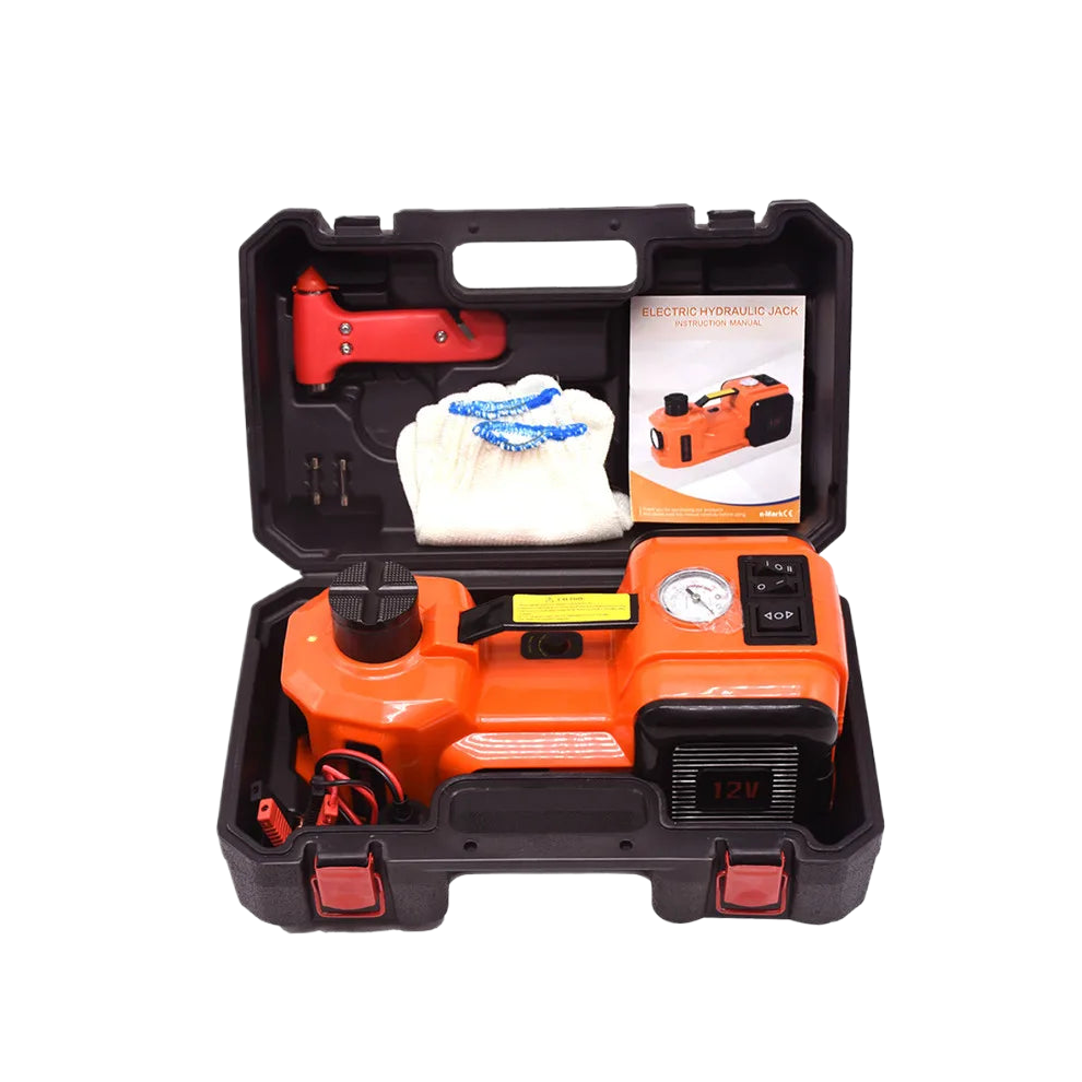 Versatile 3-in-1 12V Hydraulic Car Jack Set with Tire Inflator, LED Flashlight, and Safety Hammer - 5 Ton Capacity (Model QZ002)