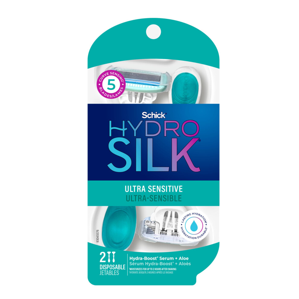 Schick Hydro Silk Sensitive Womens Disposable Razors, 2 Count, 5-Blade Disposable Razors for Women Sensitive Skin, Travel Razor for Women