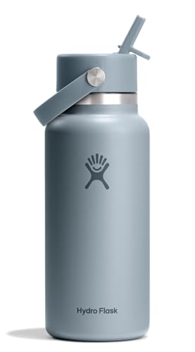 Hydro Flask – Wide Flex Straw Cap 946 ml (32 oz) Bottle – Stainless Steel, Leakproof Straw, Dishwasher Safe – Insulated Cold 24 Hrs – Wide Mouth, Ice Cube Friendly – Shale Gray