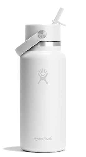 Hydro Flask – Wide Flex Straw Cap 946 ml (32 oz) Bottle – Stainless Steel, Leakproof Straw, Dishwasher Safe – Insulated Cold 24 Hrs – Wide Mouth, Ice Cube Friendly – White