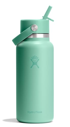 Hydro Flask – Wide Flex Straw Cap 946 ml (32 oz) Bottle – Stainless Steel, Leakproof Straw, Dishwasher Safe – Insulated Cold 24 Hrs – Wide Mouth, Ice Cube Friendly – Mermaid Green