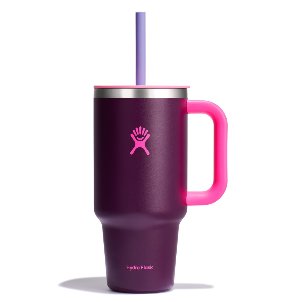 Hydro Flask – Travel Tumbler 936 ml (32 oz) with Clear Press-in Straw Lid – Stainless Steel – Double Wall Vacuum Insulated – Splash Resistant – Trillium