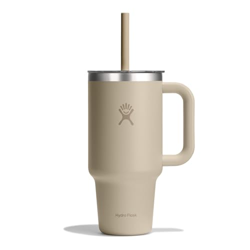 Hydro Flask – Travel Tumbler 946 ml (32 oz) with Clear Press-in Straw Lid – Stainless Steel – Double Wall Vacuum Insulated – Splash Resistant – Oat