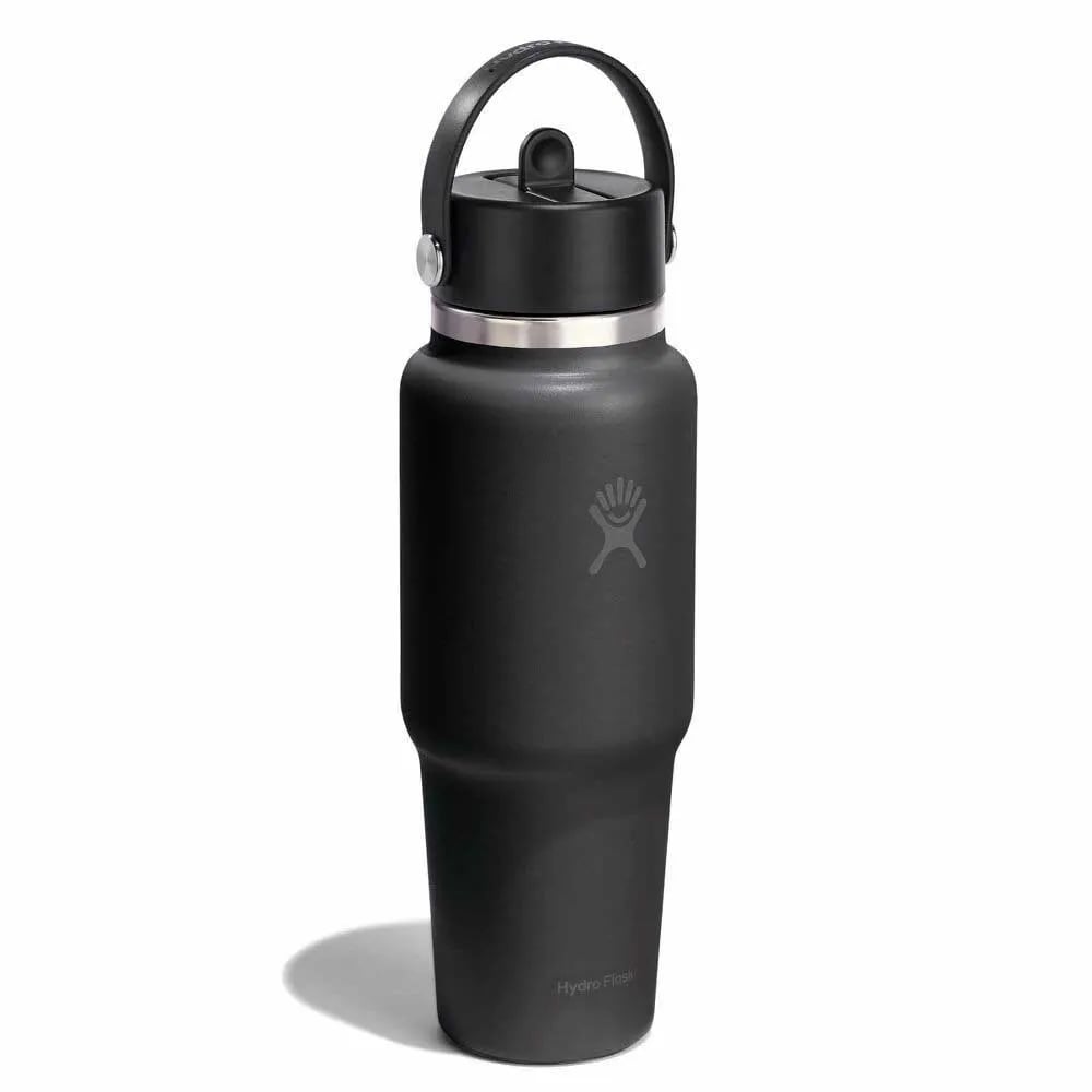 Hydro Flask – Wide Flex Straw Travel Bottle 946 ml (32 oz) – Stainless Steel, Leakproof, Fits Most Cupholders – Insulated Cold 24 Hrs – Wide Mouth, Ice Cube Friendly – Black