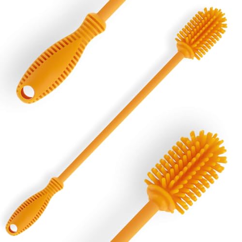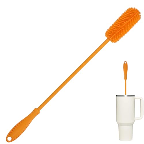 Silicone Bottle Cleaning Brush with Long Handle, 39.5cm Water Bottle Cleaner for Baby Bottles, Hydro Flask, Sports Bottle, Vase, Glassware, Perfect for Smaller Diameter Bottle Openings(Long Orange)