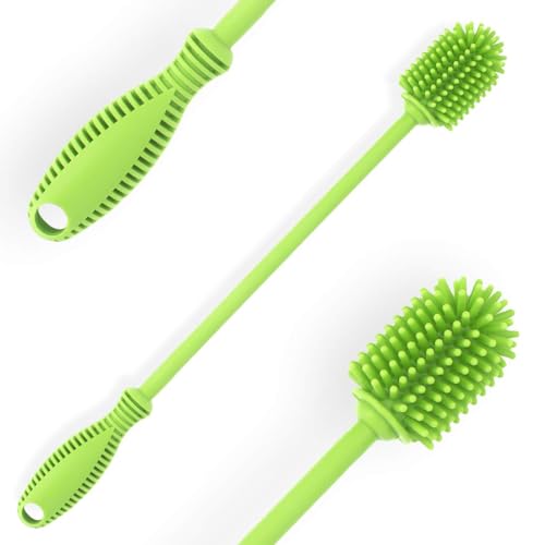 ddLUCK Baby Bottle Cleaning Brush with Long Handle, 31cm Silicone Water Bottles Cleaner Brushes for Hydro Flask, Sports Bottle, Vase, Glass Cup, Perfect for Smaller Diameter Bottle Openings (Qty 1)