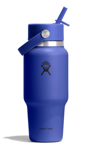Hydro Flask – Wide Flex Straw Travel Bottle 946 ml (32 oz) – Stainless Steel, Leakproof, Fits Most Cupholders – Insulated Cold 24 Hrs – Wide Mouth, Ice Cube Friendly – Harbor Blue