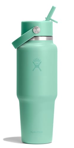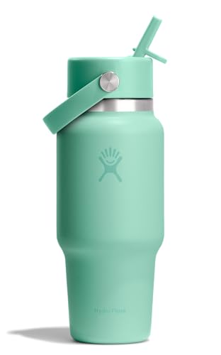 Hydro Flask – Wide Flex Straw Travel Bottle 946 ml (32 oz) – Stainless Steel, Leakproof, Fits Most Cupholders – Insulated Cold 24 Hrs – Wide Mouth, Ice Cube Friendly – Mermaid Green