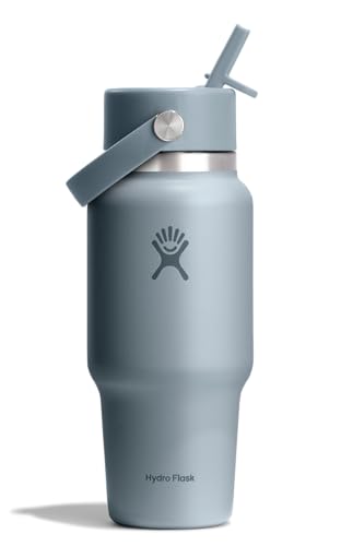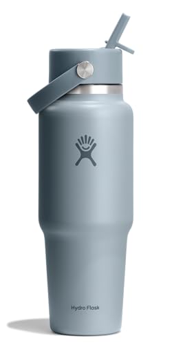 Hydro Flask – Wide Flex Straw Travel Bottle 946 ml (32 oz) – Stainless Steel, Leakproof, Fits Most Cupholders – Insulated Cold 24 Hrs – Wide Mouth, Ice Cube Friendly – Shale Gray