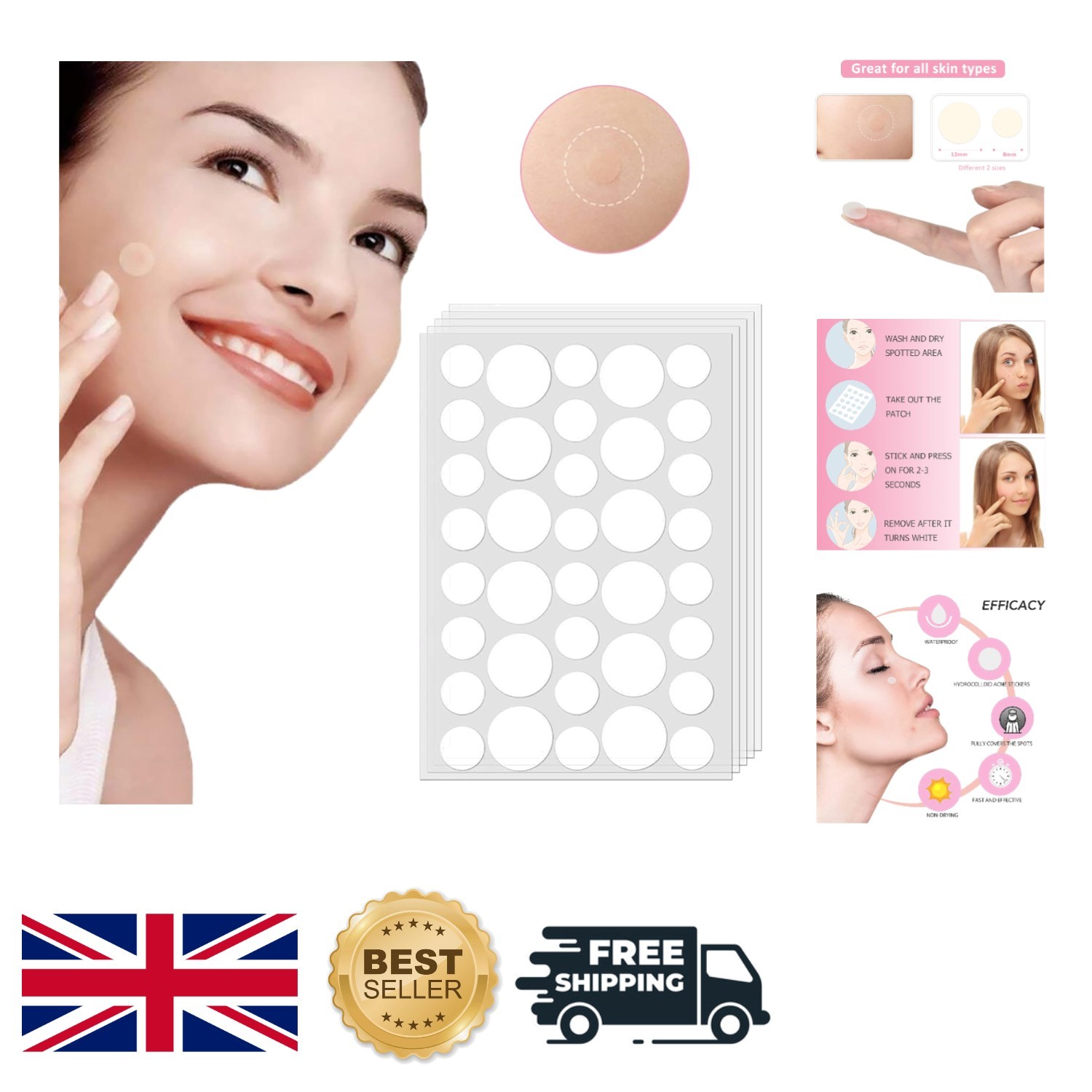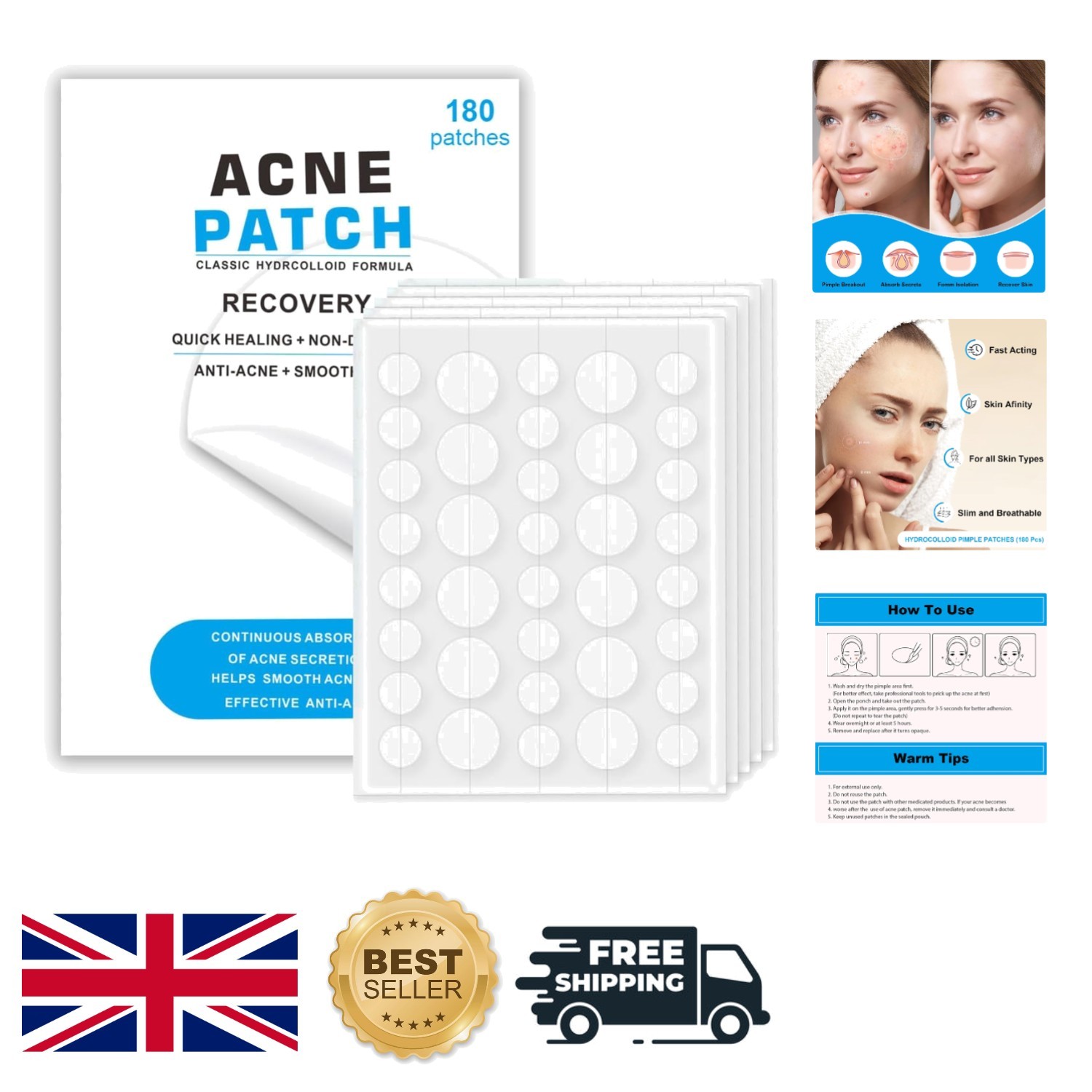 Hydrocolloid Acne Patches – 360 Pc Spot & Pimple Dots for Face Blemishes UK