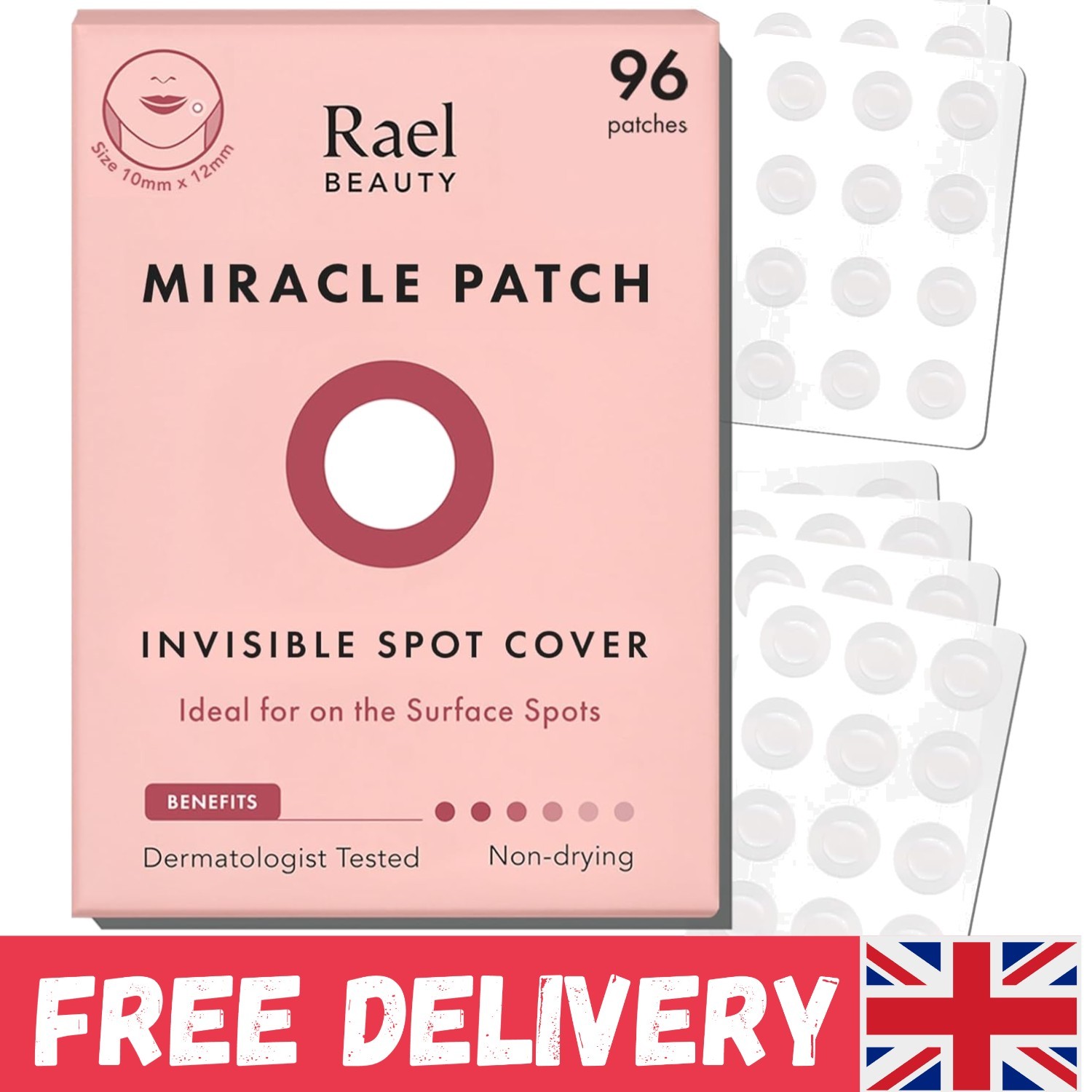 Rael Pimple Patches Hydrocolloid Acne Spot Treatment 96 Patches 2 Sizes