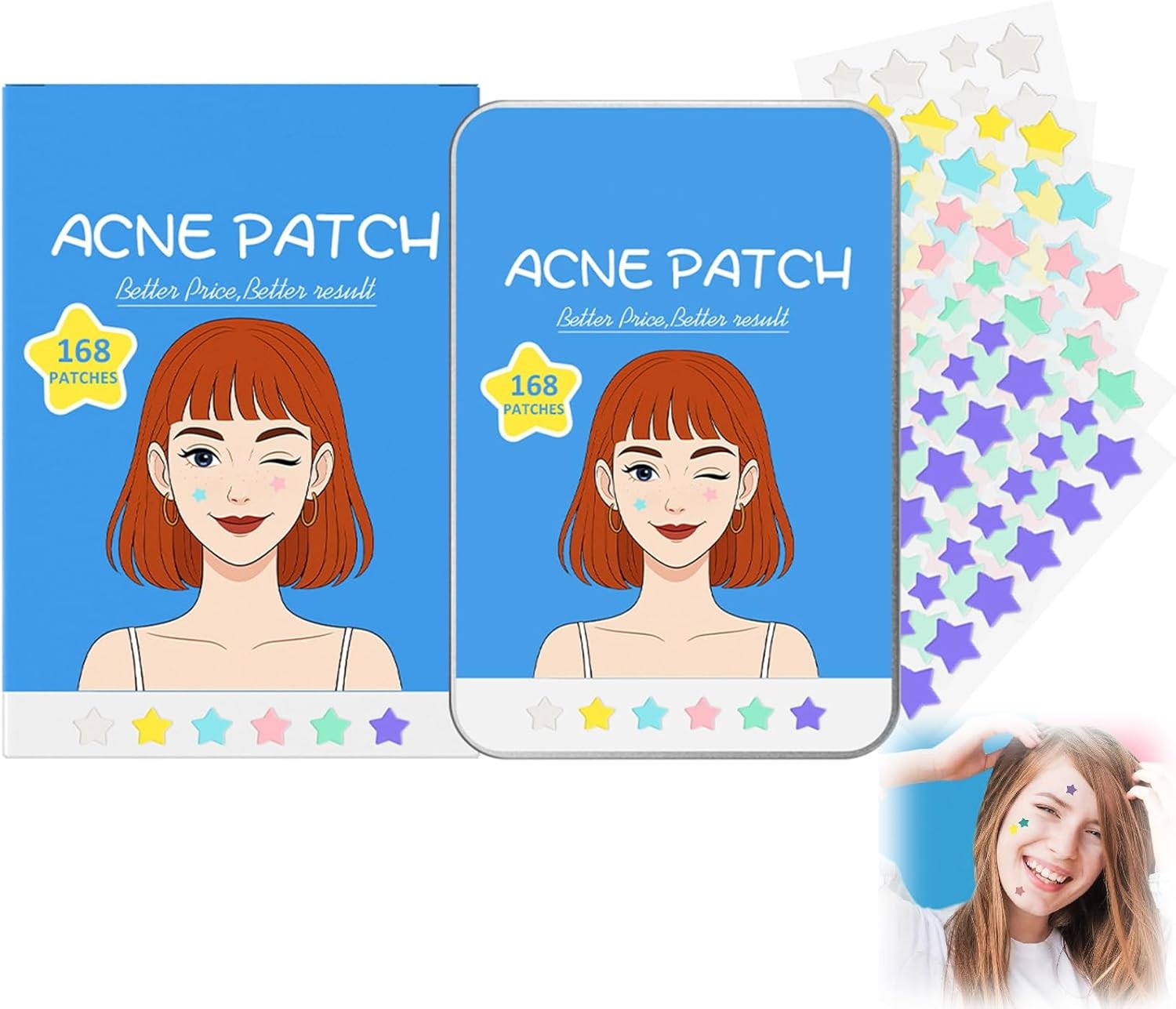 LitBear Acne Pimple Patch, 6 Colors 168 Dots Star Pimple Patches with Case, Tea Tree Oil & Centella Oil, Hydrocolloid Acne Pimple Patches for Face Cute Zit Patches Pimple Stickers Acne Dots