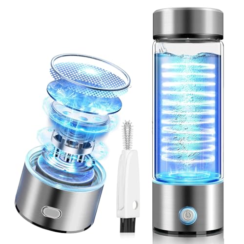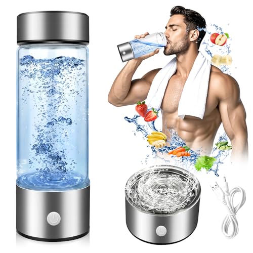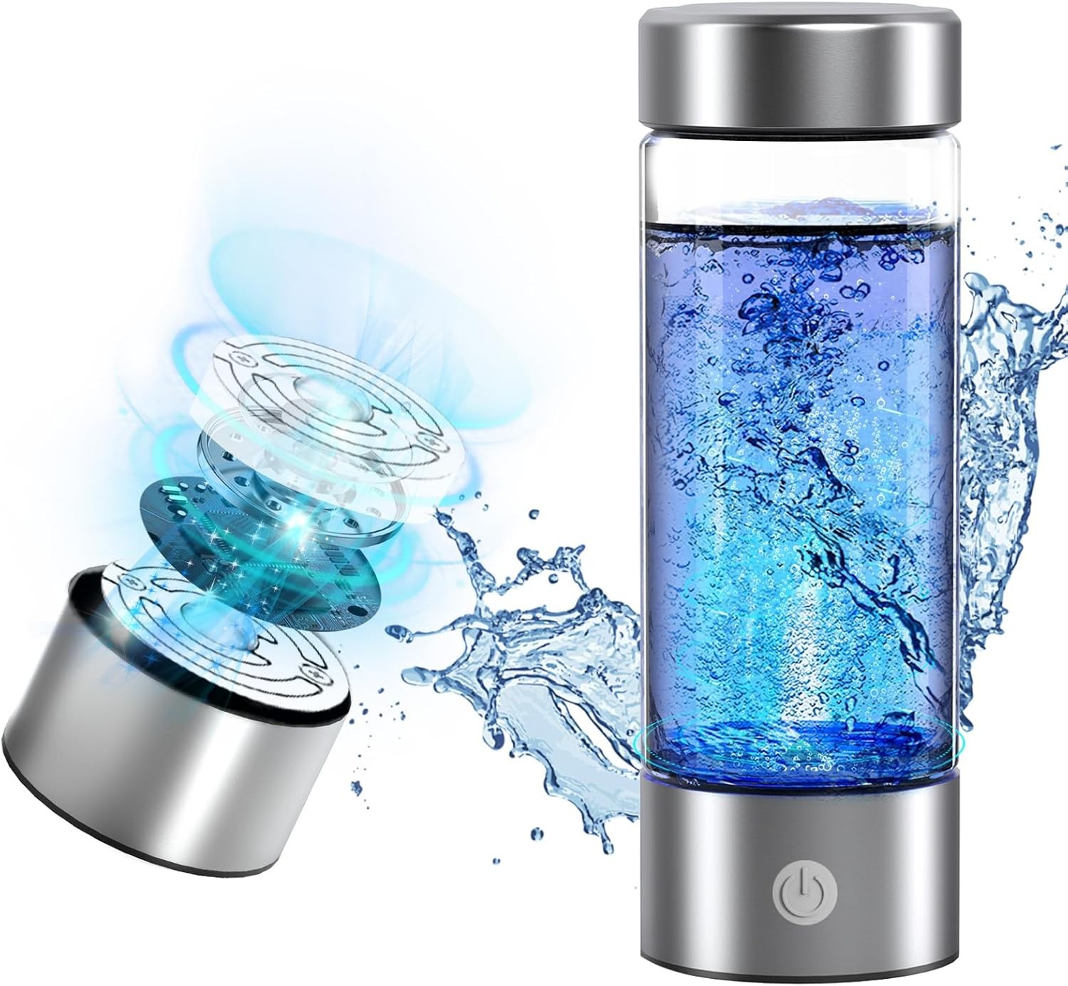 Hydrogen Water Bottle, Water Bottles with PEM and SPE Technology, Up to 1300PPB, Portable Hydrogen Water Generator Maker, New Technology Glass Water Ionizer (Silver)