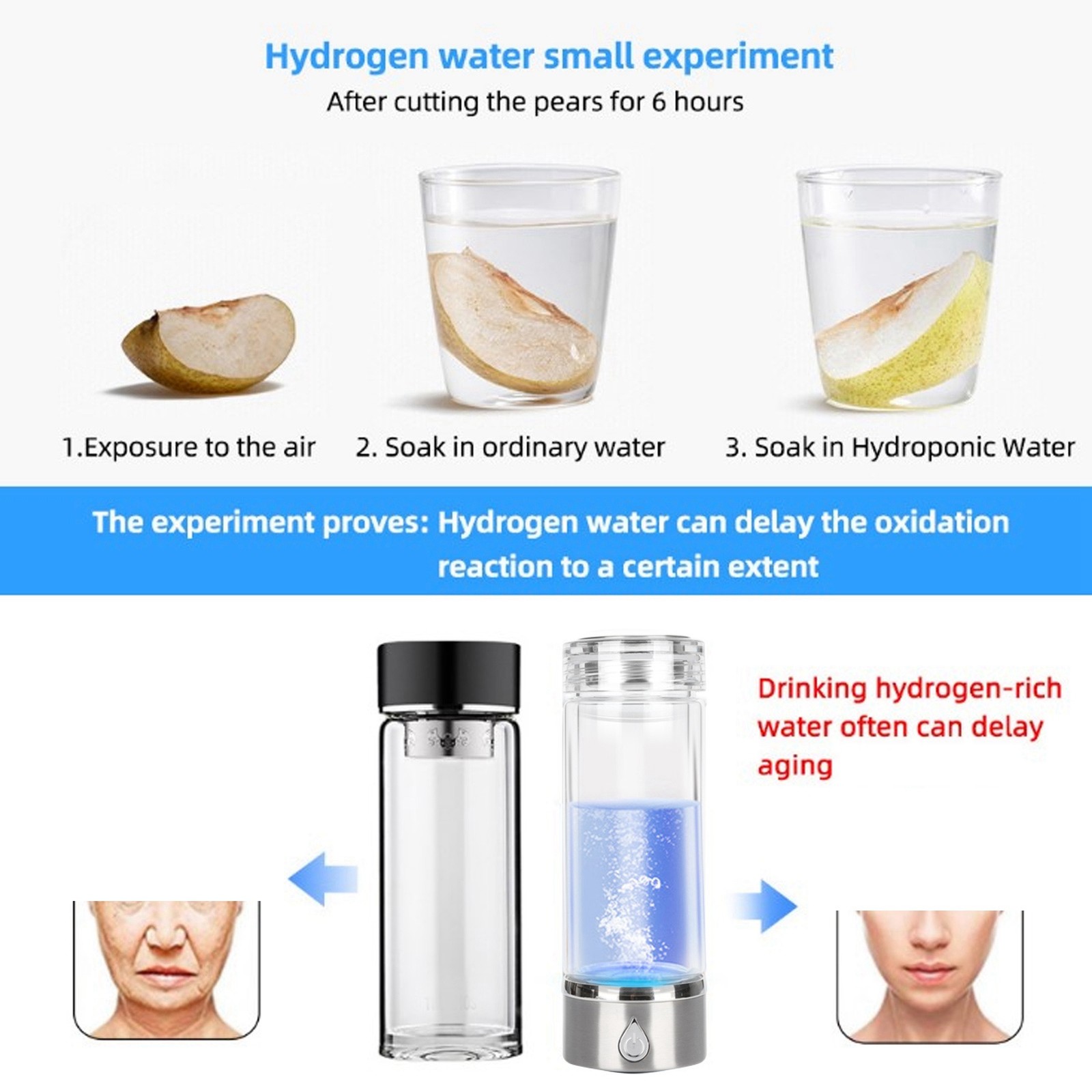 Hydrogen Rich Water Bottle, Glass Water Cup With New Technology, Health Improving Bottle On The Go Home, Water Generator With USB Charging Improves Metabolism And L