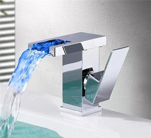 TTDGYYXW Hydropower LED Waterfall Faucet - Deck Mounted Solid Brass Sink Mixer Tap for Bathroom - Stylish Basin Waterfall Tap with Energy-Saving Technology