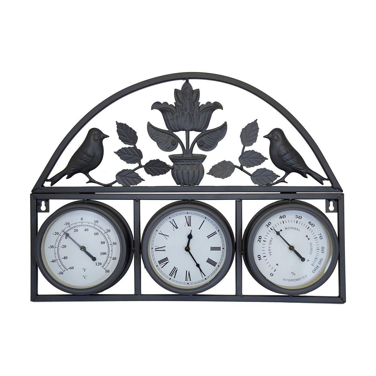 Shabby Chic Dark Grey Wall Clock With Thermometer & Hygrometer