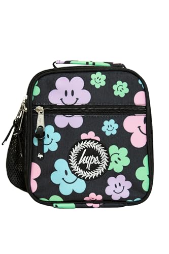 hype Unisex Lunch Box, Black with Pastel Flowers, School Bag for Kids, Stylish Lunch Bag with Bottle Holder, 3 Storage Compartments, Inside Thermal Lining & Grab Handle