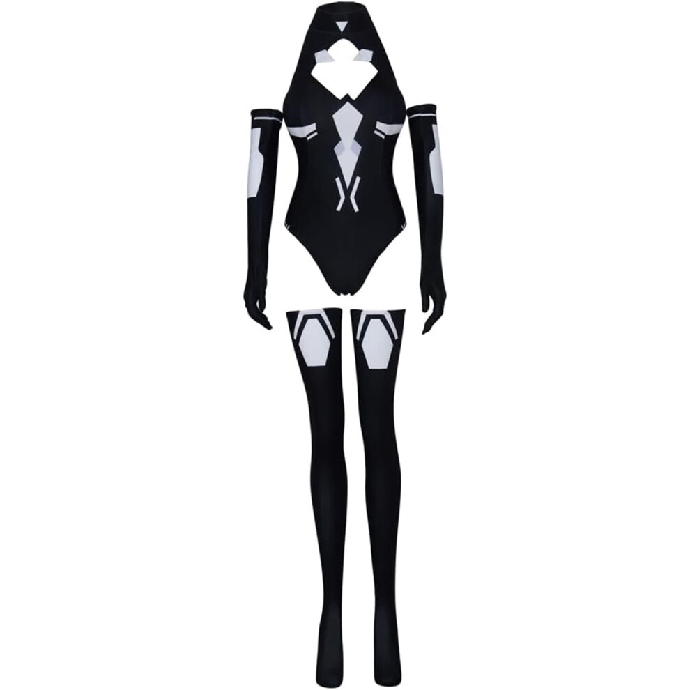 (L, White) Women's Bodysuit for Hyperdimension Neptunia Costume Noire Black Heart Cosplay Outfit