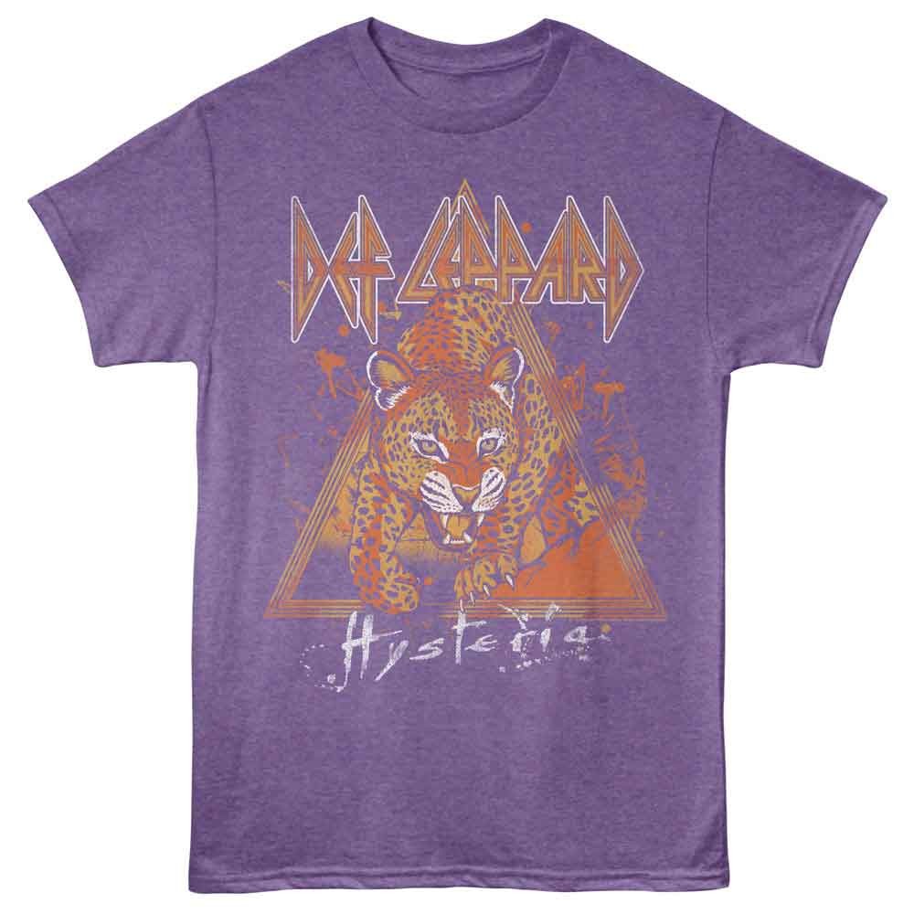 Def Leppard - Leopard On Rock Hysteria - Adult Heather T-Shirt - Purple Heather