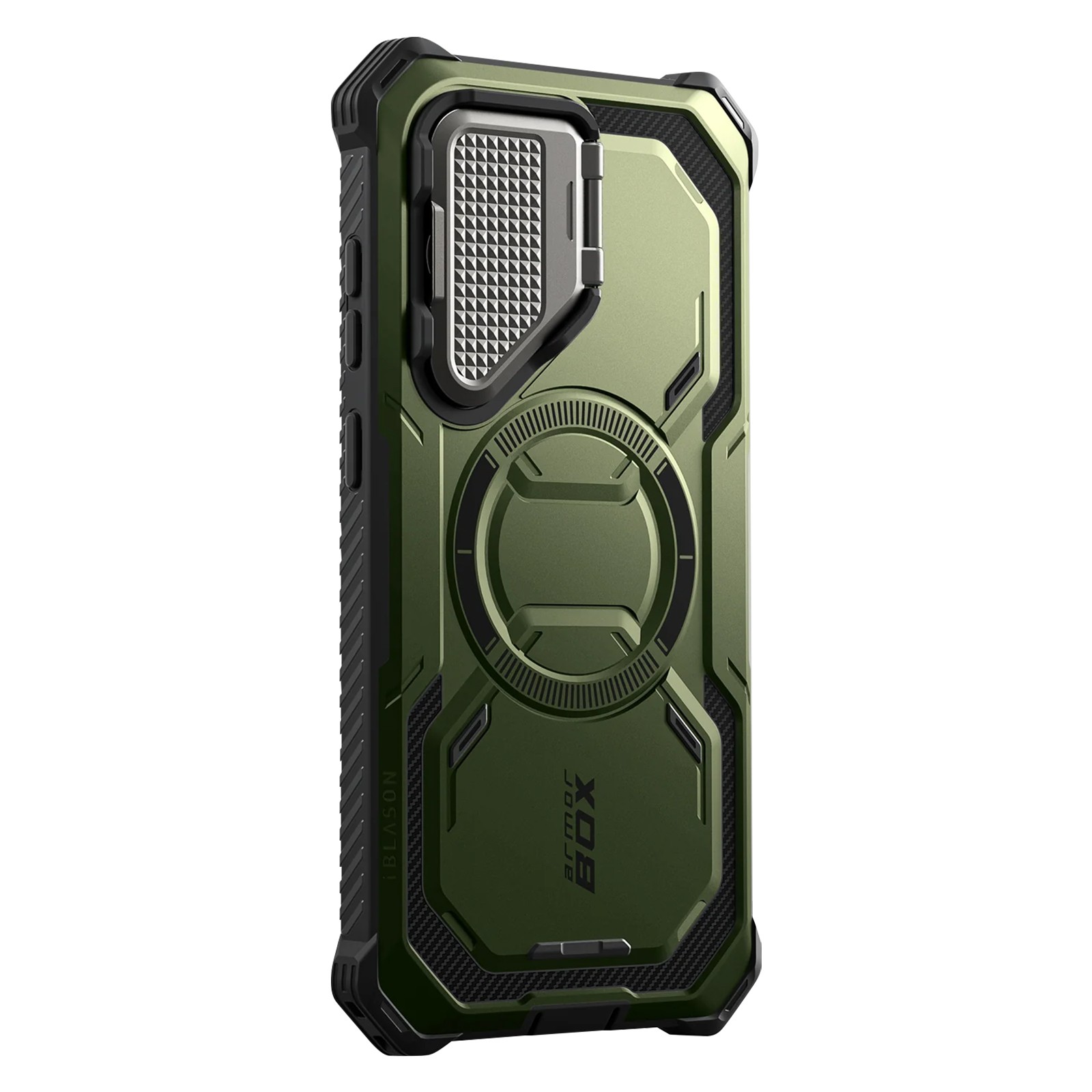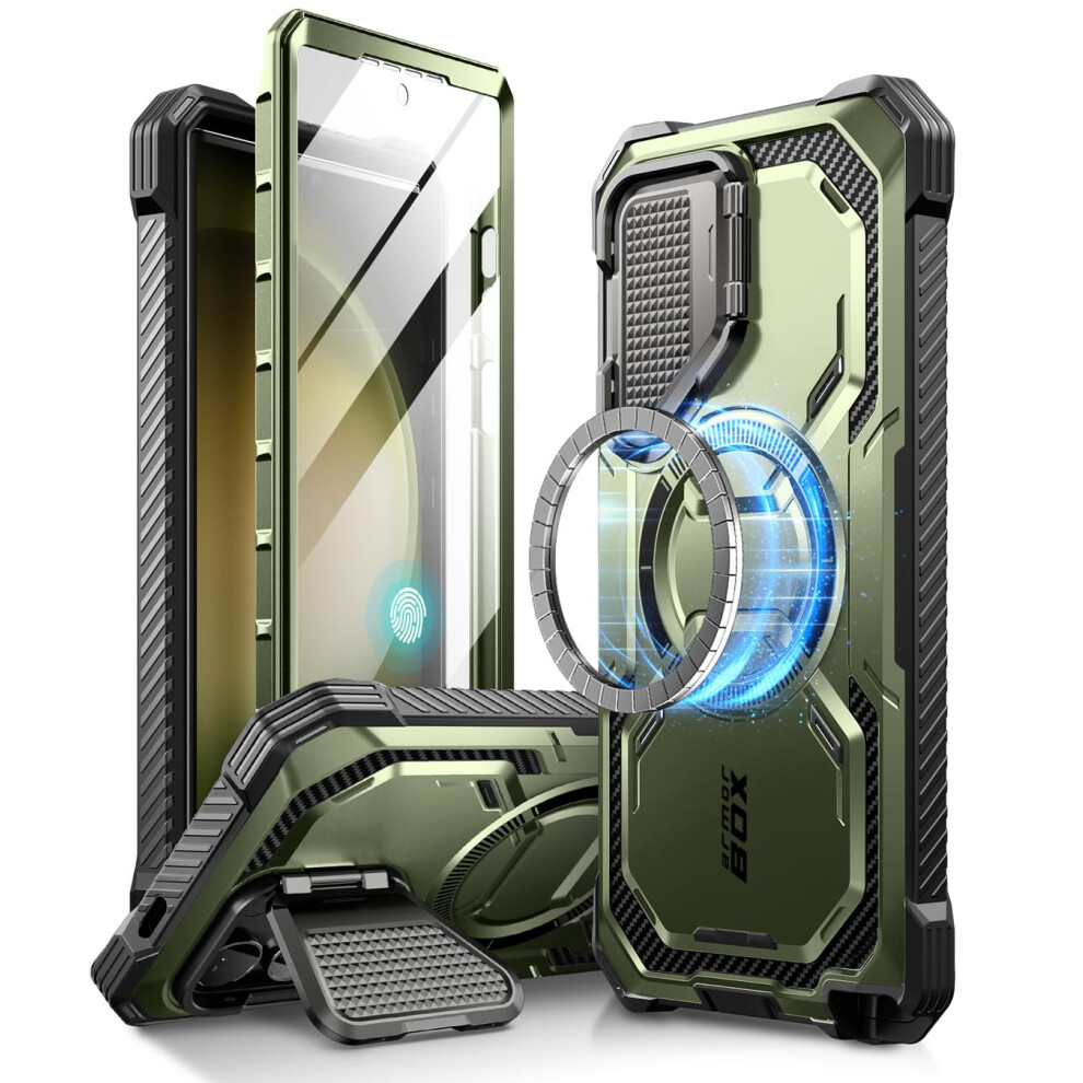 i-Blason Armorbox for Samsung Galaxy S24 Ultra Case MagSafe with Camera Cover Stand [Support Wireless Charger] 360 Full-Body Case with Screen Protector & Kickstand Phone Case for S24 Ultra, Green