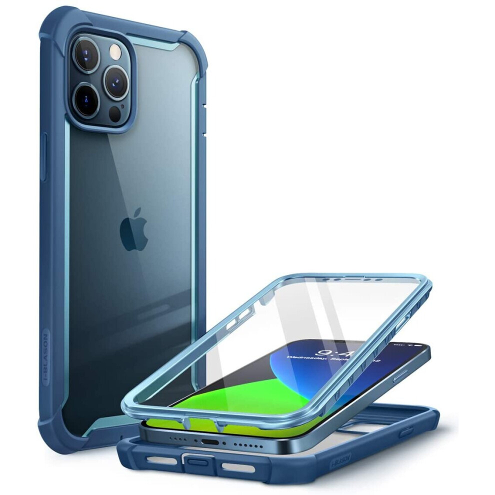 i-Blason Ares Case for iPhone 12 Pro Max 6.7 inch (2020 Release), Dual Layer Rugged Clear Bumper Case with Built-in Screen Protector (Blue)