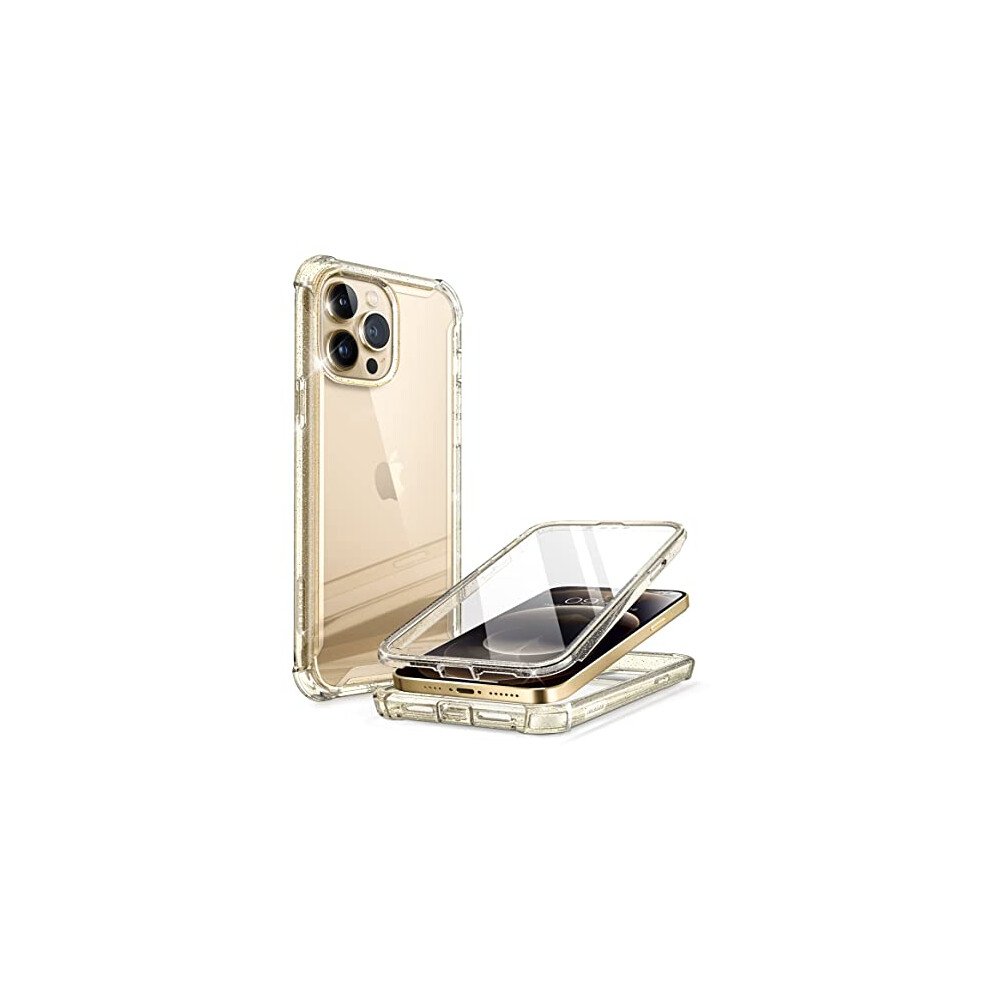 i-Blason Ares Case for iPhone 13 Pro Max 6.7 inch (2021 Release), Dual Layer Rugged Clear Bumper Case with Built-in Screen Protector (Gold/Glitter)