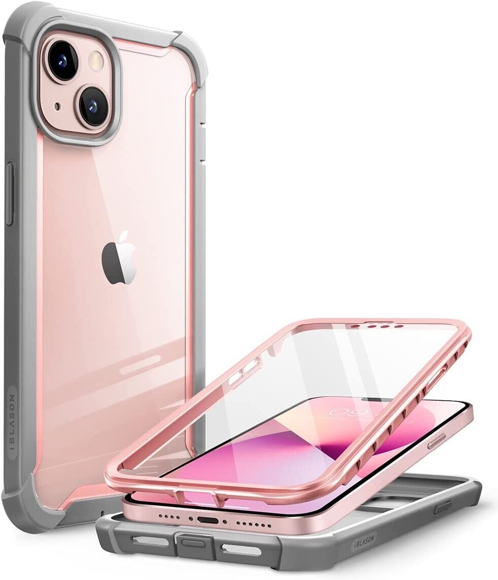 i-Blason AresMag for iPhone 15/14/13 [6.1 inch], MagSafe Compatible Full-Body Shockproof Clear Bumper Case with Built-in Screen Protector (Pink)