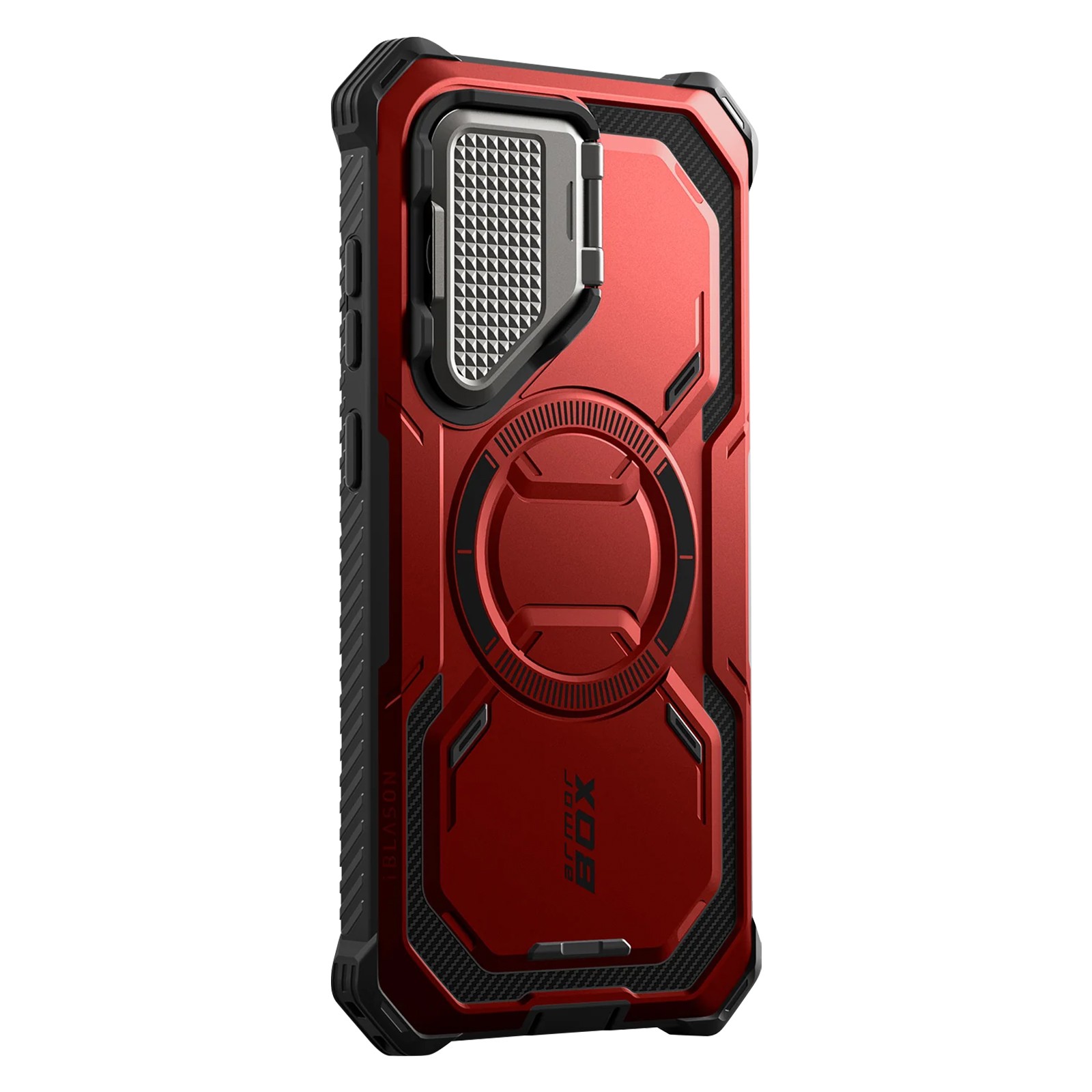 i-Blason Armorbox for Samsung Galaxy S24 Ultra Case MagSafe with Camera Cover Stand [Support Wireless Charger] 360 Full-Body Case with Screen Protector & Kickstand Phone Case for S24 Ultra, Red