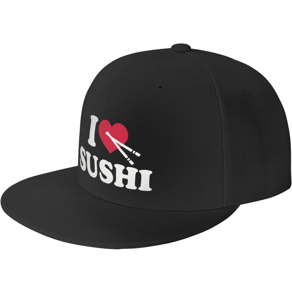 Men Women Adjustable Baseball Caps, I Love Eat Sushi Unisex Plain Hats Vintage Trucker Dad Cap Black