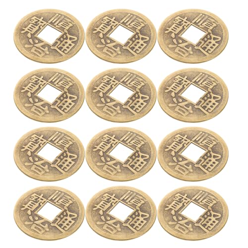 ZUNOXAZ 12pcs Chinese Feng Shui Fortune Coins Vintage Brass Wealth Charms for Prosperity and Success I-ching Divination Ancient Coin Decoration Accessories