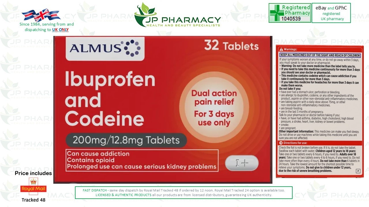 Ibuprofen and cod 200mg/128mg dual action pain relief. X32 tablets. EXP: 10/2028